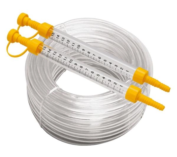 Poziomnica wodna TOPEX z wężem znajduje swoje zastosowanie w budownictwie i przy pracach wykończeniowych. Wykonana z tworzywa PVC. Posiada dwie fiolki z milimetrową podziałką oraz gumowymi zatyczkami.