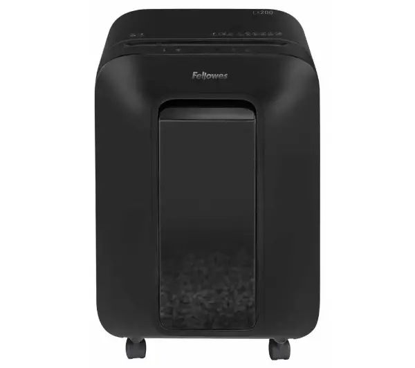 <h2>Fellowes LX200 Czarny</h2>Fellowes LX200 to niezbędny sprzęt w małych biurach i domowych gabinetach. Z tą niszczarką łatwo pozbędziesz się niepotrzebnych dokumentów – nawet tych spiętych zszywkami – oraz starych kart kredytowych.Wielkość i wydajność niszczarki idealnie sprawdza się w domu lub małym biurzeJednorazowo urządzenie jest w stanie zniszczyć aż 12 kartek (70g) formatu A4Wyświetlacz IntelliBAR™ da Ci komplet informacji na temat bieżącej pracy urządzeniaPoziomy zabezpieczeń P-4 oraz T-4 pozwalają na odpowiednie niszczenie dokumentów i kart kredytowychDuża wytrzymałość – sprawdza się przy niszczeniu dokumentów ze zszywkami oraz kart kredytowychJeśli niszczone kartki utkną w urządzeniu, skorzystaj z funkcji cofania, by odblokować mechanizmWyjmowany kosz o pojemności 22 l zapewnia wygodne wyrzucanie zniszczonych dokumentówBezproblemowe przenoszenie urządzenia zapewniają kółka zamontowane w obudowie <h2>Poznaj niszczarkę Fellowes LX200</h2> Do domu i biuraNiszczarka Fellowes LX200 znajdzie zastosowanie zarówno w domowych stanowiskach do pracy zdalnej, jak i w małych biurach. To kompaktowe, wygodne w transporcie urządzenie, które jednocześnie charakteryzuje się wysoką wydajnością pracy. Pozwala na efektywne niszczenie papieru, co docenią wszystkie osoby pracujące na co dzień z dokumentami. Wysoka wydajnośćNie masz czasu na niszczenie kartek pojedynczo, a musisz pozbyć się pokaźnej sterty starych dokumentów? Fellowes LX200 nie zawiedzie Cię i w takiej sytuacji! Wydajność urządzenia pozwala na jednoczesne cięcie aż 12 kartek (70g) w formacie A4! Oznacza to o wiele szybszą pracę przy porządkowaniu akt zalegających w szafkach. Możliwość cofaniaCzasami niszczone kartki mogą zablokować się pomiędzy ostrzami urządzenia Fellowes LX200. W takiej sytuacji możesz jednak błyskawicznie przywrócić sprawność niszczarki! Wystarczy, że skorzystasz z funkcji cofania, która pomoże w odblokowaniu kartek, które się zacięły. Tym samym nie musisz się zwracać do serwisu za każdym razem, gdy dojdzie do podobnego zdarzenia. Pojemny, wyjmowany koszW niszczarce Fellowes LX200 znajdziesz duży kosz o pojemności 22 l, w którym zmieści się duża ilość ścinków po niszczonych dokumentach. Kiedy przyjdzie czas na opróżnienie zbiornika, zrobisz to bez najmniejszego trudu – kosz jest wyjmowany, więc wystarczy wziąć worek na śmieci i jednym ruchem przesypać do niego zawartość pojemnika. Wyposażona w kółkaFellowes LX200 to sprzęt, który można wygodnie używać nawet w gabinetach, w których pracuje kilka osób. Niszczarkę z łatwością przestawisz z jednego miejsca na drugie, ponieważ została wyposażona w kółka w obudowie. W związku z tym przesuwanie jej pomiędzy stanowiskami nie wymaga od Ciebie niemal żadnego wysiłku! Czytelny wyświetlaczW urządzeniu Fellowes LX200 znajdziesz wyświetlacz IntelliBAR™, dzięki któremu zyskasz kontrolę nad bieżącą pracą niszczarki. Poinformuje Cię, gdy konieczne będzie przerwanie pracy w celu schłodzenia podzespołów, zaalarmuje, gdy włożona zostanie zbyt duża liczba kartek czy też zasygnalizuje ewentualne zacięcia papieru oraz zapełnienie kosza na ścinki. W związku z tym przez cały czas wiesz, jak przebiega proces niszczenia dokumentów. Niszczenie wrażliwych danychJeśli nie chcesz, by ktokolwiek był w stanie odtworzyć treść zniszczonych przez Ciebie dokumentów, wybierz do swojego biura urządzenie Fellowes LX200. Dzięki poziomowi zabezpieczeń na poziomie P-4 dla dokumentów oraz T-4 dla kart kredytowych, nikt nie będzie miał dostępu do znajdujących się na nich informacji. Niszczarka ta spełni swoją rolę podczas usuwania poufnych akt zawierających wrażliwe dane, a zatem z powodzeniem może być stosowana w większości przedsiębiorstw. Solidne nożeNiszczarka Fellowes LX200 pozwoli Ci w pełni skupić się na pracy, bez konieczności tracenia czasu na niepotrzebne działania. Nie musisz więc pamiętać, aby przed włożeniem pliku dokumentów do urządzenia, usuwać z nich zszywki. Noże zastosowane w tym modelu z powodzeniem poradzą sobie z drobnymi metalowymi elementami, takimi jak małe spinacze. Co więcej, równie sprawnie upora się z niszczeniem kart płatniczych i starych dokumentów z grubego plastiku.<h2>Zawartość opakowania Fellowes LX200</h2>W opakowaniu Niszczarka Kabel zasilający Instrukcja obsługiFellowes – marka godna zaufaniaProdukty niezbędne w każdym biurzeProducent niszczarek do dokumentów, laminatorów, bindownic czy akcesoriów do biurka Marka o globalnych zasięgachProdukty dostępne w ponad 100 krajach na świecie Ponad 100 lat doświadczeniaNa rynku od 1917 roku