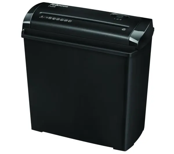 <h4>Fellowes P-25S</h4><p>Korzystając z niszczarki Fellowes P-25S, szybko i sprawnie pozbędziesz się poufnych dokumentów – i to w bezpieczny sposób.</p><h4>Poznaj Fellowes P-25S</h4><a></a><h5>NIEWIELKIE WYMIARY</h5><p>Urządzenie jest niewielkie i poręczne, dzięki czemu zmieści się wszędzie.</p><a></a><h5>STOPIEŃ BEZPIECZEŃSTWA P1</h5><p>Niszczarka tnie dokumenty na paski o szerokości 7 mm. Sprawdzi się zatem w przypadku większości ogólnych dokumentów.</p><a></a><h5>INTUICYJNA OBSŁUGA</h5><p>Korzystanie z urządzenia jest wyjątkowo proste – w górnej części obudowy znajdziesz wszystkie przyciski funkcyjne do wygodnego sterowania.</p><h4>Fellowes P-25S z bliska</h4><h6>1 SZYBKA I WYDAJNA PRACA</h6><p>Urządzenie niszczy nawet do 5 kartek (70g) jednocześnie, dzięki czemu wykonanie pracy przebiega sprawnie.</p><h6>2 SZEROKA SZCZELINA WEJŚCIOWA</h6><p>Szczelina wejściowa o szerokości równej 220 mm idealnie nadaje się do niszczenia kartek w formacie A4 i mniejszych.</p><h6>3 POJEMNY KOSZ</h6><p>Kosz niszczarki pomieści do 11l papieru pociętego na paski, zanim będzie wymagać opróżnienia – nie musisz więc tego robić po każdym użyciu.</p><h4>W opakowaniu Fellowes P-25S</h4><h6>1Niszczarka</h6><h6>2Instrukacja obsługi</h6><h6>3Kabel zasilający</h6><h4>Fellowes – marka godna zaufania</h4><p>1 rok gwarancji na całe urządzenie, 1 rok na noże tnące</p><p>100-letnie doświadczenie w produkcji wyposażenia biurowego</p><p>Produkty dostępne w ponad 100 krajach na świecie</p>