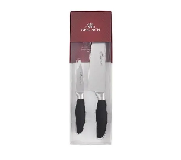 W skład zestawu wchodzą: nóż szefa kuchni 8” oraz nóż do jarzyn 3,5”.