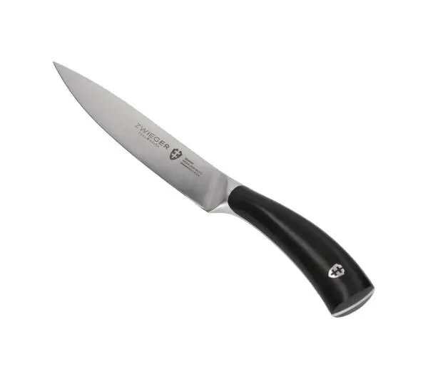 <h2>Zwieger Obsidian 13 cm - nóż uniwersalny</h2><p>Zwieger Obsidian zadowoli wszystkich wielbicieli gotowania, którzy cenią sobie wysoką jakość zakupionych produktów. Zaopatrz się w uniwersalny nóż i gotuj potrawy z mięsa, warzyw, owoców i nabiału.</p><h2>Poznaj Zwieger Obsidian</h2><a></a><h3>DOSKONAŁA OSTROŚĆ</h3><p>Pieczywo, mięso czy warzywa – z nożem kuchennym Zwieger Obsidian bez problemu pokroisz je wszystkie. Dzięki poczwórnemu, fabrycznemu systemowi ostrzenia produkt charakteryzuje się bardzo dużą ostrością, a gotowanie staje się proste i przyjemne.</p><a></a><h3>ODPORNOŚĆ I TRWAŁOŚĆ</h3><p>Nie lubisz częstego wymieniania akcesoriów kuchennych? Zdecyduj się na Zwieger Obsidian, który będzie Ci towarzyszył przez długie lata. Połączenie stali nierdzewnej i tworzywa ABS gwarantuje niezawodność.</p><a></a><h3>KRÓJ JAK CHCESZ</h3><p>Krojenie wędlin czy dużych warzyw było kłopotliwe? Z tym nożem zapomnisz o tym problemie. Produkt zawiera specjalną nasadę, która ułatwia docisk noża do potrawy i potęguje efekt krojenia.</p><h2>Nóż kuchenny Zwieger Obsidian z bliska</h2><h3>1 NIEZAWODNA STAL</h3><p>Ostrze zostało wykonane ze stali nierdzewnej X50CrMoV15 o wyjątkowej twardości 56 HRC. Dzięki dodatkowi chromu ma ona wysoką odporność na korozję, a molibden zmniejsza jej kruchość, pomagając Ci w gotowaniu najbardziej wymagających dań.</p><h3>2 FUNKCJONALNOŚĆ</h3><p>W Zwieger Obsidian znajdziesz ostrze full tang, zapewniające dużą wytrzymałość i niezawodność. Takie rozwiązanie sprawdzi się w krojeniu najtwardszych produktów spożywczych, jednocześnie gwarantując bezpieczeństwo.</p><h3>3 ELEGANCKA RĘKOJEŚĆ</h3><p>Rękojeść noża została stworzona z najwyższej klasy tworzywa ABS, które wyróżnia duża twardość i odporność na zarysowania i uderzenia. Dzięki temu masz pewność, że prezentowany nóż kuchenny Zwieger Obsidian zostanie z Tobą na długo i w jak najlepszym stanie.</p><h2>W opakowaniu Zwieger Obsidian</h2><h6>1Nóż uniwersalny</h6><h2>Zwieger – marka godna zaufania</h2><p>Producent profesjonalnych noży z niemieckiej stali nierdzewnej</p><p>Marka wielokrotnie nagradzana i wyróżniania w prestiżowych konkursach</p><p>Wieloletni ekspert w branży akcesoriów kuchennych</p>