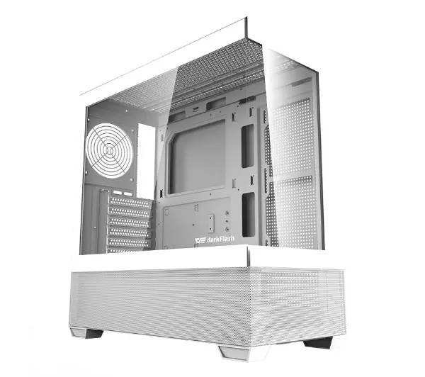 <h2>Obudowa komputerowa Darkflash DS900 AIR</h2><p>Darkflash DS900 AIR to zaawansowana obudowa komputerowa, zaprojektowana z myślą o najbardziej wymagających użytkownikach. Elegancki design przyciąga uwagę nowoczesnym wzornictwem, a przemyślana konstrukcja zapewnia wysoką wydajność oraz stabilność. Model DS900 AIR pozwala na znaczną poprawę parametrów Twojego komputera. W zestawie nie znajdują się wentylatory.</p> <h2>Wyjątkowa stabilność konstrukcji</h2><p>Obudowa została wyposażona w trapezowe nóżki oraz podkładki antywibracyjne, które gwarantują stabilność i redukcję drgań. To rozwiązanie jest szczególnie istotne dla zaawansowanych zestawów, które podczas pracy generują znaczące wibracje, wymagające odpowiedniego tłumienia.</p> <h2>Wszechstronność rozbudowy</h2><p>DS900 AIR oferuje dużą przestrzeń wewnętrzną, umożliwiającą łatwą rozbudowę systemu oraz utrzymanie porządku. Obudowa jest wyposażona w uniwersalne uchwyty, które pozwalają na montaż dwóch dysków SSD oraz dwóch dysków HDD, co zapewnia dużą swobodę w konfiguracji pamięci masowej według indywidualnych preferencji użytkownika.</p> <h2>Skuteczna wentylacja i chłodzenie</h2><p>Darkflash DS900 AIR umożliwia stworzenie zaawansowanego układu chłodzenia dzięki opcji montażu kilku wentylatorów oraz radiatorów, co zapewnia optymalne chłodzenie wszystkich podzespołów. Tylny panel obudowy posiada stalową siatkę ochronną, która wspomaga wydajną wentylację. Takie rozwiązanie jest niezwykle istotne dla utrzymania niskiej temperatury komponentów, szczególnie podczas intensywnej pracy systemu.</p> <h2>Pełna kompatybilność i szerokie możliwości</h2><p>Obudowa Darkflash DS900 AIR współpracuje z płytami głównymi w formatach ATX, M-ATX oraz ITX, co daje użytkownikowi duże możliwości dostosowania konfiguracji. Oferuje też siedem slotów na karty rozszerzeń, umożliwiając montaż karty graficznej o długości do 425 mm oraz chłodzenia procesora o wysokości do 170 mm. Umieszczenie zasilacza w dolnej części obudowy wspiera optymalne zarządzanie okablowaniem oraz poprawia przepływ powietrza, co wpływa na lepszą wentylację wnętrza.</p>