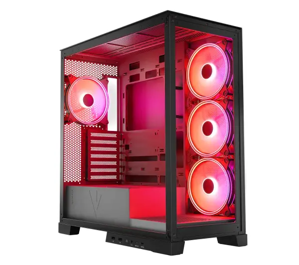 Postaw na obudowę z podświetleniem ARGB (Alpha Red Green Blue) i wyraź swój styl! Podziwiaj atrakcyjną grę kolorów i dynamiczne efekty, by sprzęt wyglądał unikalnie. Łatwo synchronizuj efekty świetlne z grami i muzyką, budując niesamowitą atmosferę. Zyskaj nie tylko ochronę podzespołów, ale także efektowną ozdobę pokoju, by rozgrywka była jeszcze przyjemniejsza!