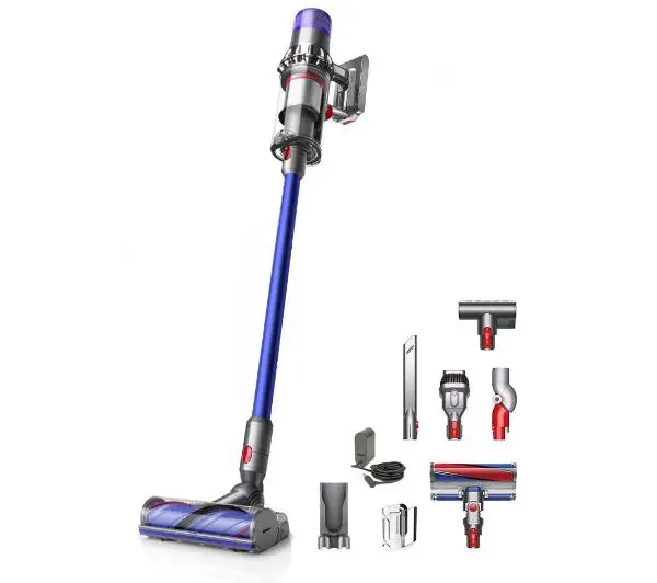 <p></p>Duża moc ssania¹. Wydajne i inteligentne sprzątanie całego domu.1<p>Do 60 minut czasu pracy</p><p>Wychwytuje 99.99% kurzu i bakterii tak małych jak 0,3 mikrometra3</p><p>2 elekstroszczotki i 7 akcesoriów w zestawie</p> Silnik Dyson Hyperdymium™<p>Obraca się z prędkością do 125 000 obrotów na minutę, co daje dużą moc ssania Dyson.1</p> <p>Technologia Radial Root Cyclone™</p><p>14 cyklonów generuje siłę o wartości ponad 79 000G, wyrzucając do pojemnika kurz bez zatykania filtra, dzięki czemu nie dochodzi do utraty mocy ssania.</p><p>Zaawansowana filtracja całego urządzenia</p><p>Hermetyczny system filtracji wychwytuje 99,99% cząsteczek tak drobnych, jak 0,3 mikrometra, w tym bakterii i alergenów.3</p><p>Tryb Med</p><p>Tryb Med zapewnia optymalną równowagę między mocą ssania i czasem pracy.</p>Nowa mini elektroszczotka<p>Idealna do sprzątania małych powierzchni, tapicerki czy schodów. Napędzane silnikiem sprzątanie małych powierzchni.</p> <p>Nowa Elektroszczotka Motorbar™</p><p>Zbiera długie włosy i zwierzęcą sierść automatycznie zapobiegając ich plątaniu. Specjalnie zaprojektowane grzebienie automatycznie usuwają owiniętą sierść i włosy ze szczotki bezpośrednio do pojemnika. Zapewnia dokładne sprzątanie każdej powierzchni. Mocny silnik umieszczony wewnątrz wałka elektroszczotki pozwala na skuteczne sprzątanie dywanów i podłóg twardych.</p><p>Elektroszczotka FluffyTM</p><p>Zbiera duże zanieczyszczenia i drobny kurz z podłóg twardych. Wałek elektroszczotki Fluffy™ pokryty jest miękką nylonową tkaniną, która zbiera większe zanieczyszczenia, podczas gdy antystatyczne włókna węglowe usuwają drobny kurz.</p>Tryb Med<p>Tryb Med zapewnia optymalną równowagę między mocą ssania i czasem pracy.</p> Tryb Eco<p>Do 60 minut pracy.* Idealny do dłuższego czyszczenia dużych domów i każdego rodzaju podłogi.</p>Tryb Boost<p>Intensywne czyszczenie wtartego brudu.</p>Dokładne sprzątanie każdej powierzchni<p> </p> <h2>Wszystkie funkcje</h2><p>Inteligentnie wyświetla aktualne informacje</p><p>Monitoruje działanie urządzenia 8000 razy na sekundę, a następnie wyświetla aktualne informacje na ekranie LCD.</p><p>Dokładne czyszczenie podłóg i dywanów</p><p>Wbudowany silnik cyfrowy obraca wałek szczotki z prędkością do 60 obrotów na sekundę. Sztywne nylonowe włosie szczotki wchodzi głęboko w dywan, aby usunąć brud, a włókna węglowe wychwytują drobny pył na twardych podłogach.</p><p>Wymienny akumulator</p><p>Wyjmij akumulator po wciśnięciu przycisku i zastąp go drugim dla jeszcze dłuższego czasu sprzątania. Dodatkowe akumulatory mogą być ładowane razem z urządzeniem lub osobno. (Drugi akumulator nie znajduje się w zestawie)</p><p>Higieniczne opróżnianie pojemnika „Point and shoot”</p><p>Mechanizm „Point and shoot” higienicznie wyrzuca cały kurz i brud w głąb kosza na śmieci, dzięki czemu nie trzeba dotykać zabrudzeń.</p><p>Przechowywanie Drop-in</p><p>W celu łatwiejszego przechowywania urządzenia i akcesoriów odkurzacz Dyson V11™ ładuje się w ściennej stacji ładującej. W ten sposób jest zawsze gotowy do ponownego użycia.</p><h2>W pudełku</h2><p>Dyson V11 Absolute odkurzacz bezprzewodowy</p><p>Elektroszczotka MotorbarTM do wszystkich rodzajów podłóg</p><p>Elektroszczotka FluffyTM do podłóg twardych</p><p>Mini elektroszczotka</p><p>Końcówka Combi</p><p>Końcówka szczelinowa</p><p>Końcówka Low Reach</p><p>Stacja dokująca</p><p>Ładowarka</p><h2>Specyfikacje</h2><p>Technologia cyklonowa</p><p>14 koncentryczych cyklonów</p><p>Moc ssania</p><p>185 AW</p><p>Objętość pojemnika</p><p>0,76 l</p><p>Filtrowanie</p><p>Zaawansowana filtracja całego urządzenia</p><p>Głowica czyszcząca</p><p>Motorbar, Fluffy</p><p>Czas pracy</p><p>Do 60 minut</p><p>Wysokość</p><p>261 mm</p><p>Długość</p><p>1286 mm</p><p>Szerokość</p><p>250 mm</p><p>Czas Ładowania</p><p>4,5 h</p><p>1Moc ssania testowana przy szczotce według EN 60312-1 CL5.8 i CL5.9, przy pełnym pojemniku, w trybie Boost.</p><p>3System filtracji przetestowany zgodnie z normą EN IEC62885-4 CL5.11 w trybie Boost.</p><p>4Przy wykorzystaniu dwóch akumulatorów, testowany zgodnie z EN 60312-1 CL5.8 i 5.9 przy pełnym pojemniku.</p>
