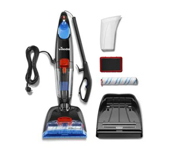 <h3>Odkurzacz myjący Vileda JetClean – porządki 3 w 1: odkurza, myje na mokro i suszy podłogi w jednym cyklu</h3><p>JetClean to mniej czasu na sprzątanie, a więcej, na to, co lubisz najbardziej!</p><p>Z tym poręcznym odkurzaczem myjącym od Viledy wykonasz 3 czynności za jednym razem: odkurzysz, umyjesz i osuszysz podłogi w jednym cyklu, oszczędzając czas i wysiłek.</p><h2>JetCelan – poznaj sposób na łatwe i szybkie czyszczenie podłóg</h2><h2>Napełnij zbiornik wodą i włącz</h2>Aby wyczyścić podłogi na błysk wystarczy woda. Oczywiście, jeśli chcesz możesz użyć niewielkiej ilości detergentu, przeznaczonego do mycia podłóg.<h2>Odkurzaj i myj</h2>Wystarczy, że włączysz tryb mycia na mokro i przesuniesz odkurzacz do przodu: odkurzysz i umyjesz podłogi na mokro w jednym kroku.<h2>Wysusz podłogę</h2>Aby podłoga była czysta i sucha, przesuń JetClean do tyłu – odkurzacz zassa płyny i usunie resztki wody z powierzchni.<h2>Oszczędzaj czas z Vileda JetClean</h2><p>Z nowym odkurzaczem myjącym Vileda JetClean wykonasz 3 czynności za jednym zamachem: odkurzysz, umyjesz i osuszysz podłogi w jednym cyklu. Aby jednocześnie odkurzyć i umyć podłogę na mokro, wystarczy przesunąć urządzenie do przodu. Podczas ruchu wstecznego odkurzacz pochłania wilgoć w cyklu odkurzania na mokro i pozostawia powierzchnie suchymi.</p><h2>Skutecznie czyść tłuste i uporczywe zabrudzenia</h2><p>Z JetClean czyszczenie tłustych, uporczywych zabrudzeń, drobin, kurzu i mokrych plam to żaden problem! Ten bezworkowy odkurzacz jest wyposażony w specjalną rolkę do mycia na mokro, która obraca się z prędkością 2800 obr./min. Dzięki temu w prosty sposób możesz pozbyć się nawet tłustych i trudnych do usunięcia zabrudzeń i osiągnąć świetne efekty czyszczenia.</p><h2>Pozbądź się 99% bakterii</h2><p>W trosce o bezpieczeństwo Twojego domu JetClean eliminuje 99% bakterii i to przy użyciu samej wody. Wałek czyszczący został wykonany z mikrofibry, która składa się z milionów cieniutkich włókien. W czasie mycia podłogi mikrowłókna zbierają wszystkie zabrudzenia. Tym sposobem usuwają także 99% bakterii. *Test przeprowadzony przez BMA-Labor GbR na bakteriach Escherichia coli i Staphylococcus aureus występujących w domu.</p><h2>Zużywaj mniej wody z systemem dwóch zbiorników</h2><p>JetClean jest wyposażony w dwa oddzielne zbiorniki na wodę. W jednym znajduje się czysta woda, aplikowana na podłogę podczas czyszczenia na mokro, drugi gromadzi brudną wodę – odsysaną z podłogi przez system odkurzania na mokro. To rozwiązanie sprawia, że podłoga jest zawsze myta czystą wodą, a odkurzacz zużywa do pięciu razy mniej wody w porównaniu do zwykłego mopa i wiadra.</p><h2>Poznaj prosty i wygodny system samooczyszczenia</h2><p>Vileda JetClean ma podstawkę, która umożliwia łatwe czyszczenie urządzenia. Jak tylko skończysz sprzątanie umieść urządzenie na tacy czyszczącej: napełnij ją wodą do zalecanego poziomu, włącz odkurzacz i gotowe! Dzięki tacy możesz także wygodnie przechowywać odkurzacz.</p><h2>Wyczyść nawet 70m² za jednym razem</h2><p>Wiesz, że z JetClean wyczyścisz do 70 m2 za jednym razem, napełniając zbiornik tylko raz. Dzięki przewodowi zasilającemu o długości 7 m szybko i skutecznie usuniesz zabrudzenia nawet z dużych powierzchni. To udogodnienie sprawia, że możesz czyścić bez konieczności przełączania urządzenia pomiędzy gniazdkami. Kształt odkurzacza pozwoli Ci z łatwością czyścić podłogi także pod meblami i w innych trudno dostępnych miejscach.</p><h2>Poznaj właściwości włókien czyszczących z mikrofibry</h2><p>Rolka czyszcząca JetClean została wykonana z połączenia włókien mikrofibry (50%) i włókien „power”. Dzięki takiej kombinacji urządzenie efektywnie usuwa nawet tłuste i uporczywe plamy.</p><h2>Dane techniczne</h2><ul> <li>Pojemność zbiornika na czystą wodę 640ml</li> <li>Pojemność zbiornika na brudną wodę 400 ml</li> <li>Długość przewodu 7 m</li> <li>Całkowite wymiary urządzenia: 26 cm x 27 cm x 124 cm (szerokość, długość, wysokość)</li> <li>Moc: 400 W</li> <li>Obroty wałka na minutę 2800 obrotów/min</li> <li>Waga (bez wody): 4,7 kg</li> <li>Zestaw zawiera: Odkurzacz bezworkowy, Wałek z mikrofibry do dokładnego czyszczenia</li></ul><h2>Doceniony w niezależnych testach ekperckich</h2><p>Skuteczność JetCleana została potwierdzona przez niezależne testy, wykonane w niemieckich instytutach. Odkurzacz uzyskał bardzo wysokie oceny w kategorii czyszczenia podłogi i osuszania z wody, pozostałej po czyszczeniu na mokro.</p><h3>Najczęściej zadawane pytania</h3><h2>Czy można używać urządzenia do czyszczenia podłóg bez worka na kurz?</h2><p>Tak, Vileda JetClean jest bezworkowy, wyposażony w demontowalny zbiornik, do którego zbierane są wszystkie zabrudzenia. Wystarczy odłączyć zbiornik i wylać brud i wypłukać przed ponownym zainstalowaniem.</p><h2>Czy mogę używać urządzenia JetClean wyłącznie do odkurzania?</h2><p>Tak, JetClean posiada w uchwycie przycisk aktywujący tryb mokrego mycia, w którym woda jest aplikowana bezpośrednio na podłogę. Jeśli JetClean w danym momencie ma służyć do osuszenia podłogi lub odkurzania bez użycia technologii JetClean, należy wyłączyć ten tryb. Gdy diody LED urządzenia nie oświetlają podłogi, woda nie jest natryskiwana na podłogę. Gdy diody LED są WŁĄCZONE i oświetlają podłogę , przepływ wody jest aktywowany i urządzenie pracuje w pełnym cyklu 3in1.</p><h2>Czy można używać detergentów czyszczących?</h2><p>System JetClean skutecznie czyści już przy użyciu świeżej wody, ale można użyć również niewielkiej ilości detergentu do czyszczenia podłóg. Należy pamiętać, aby nie używać zbyt dużej ilości detergentu, ponieważ spowoduje to powstanie zbyt dużej ilości piany, która pozostawi smugi na podłodze.</p><h2>Czy wałek mo