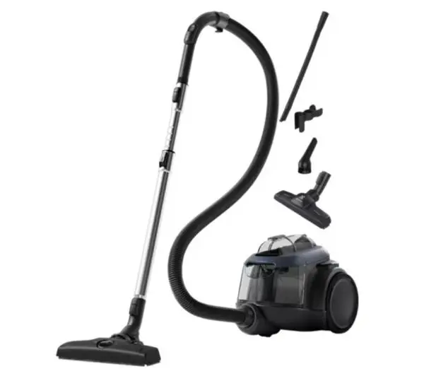 Zaprojektowany dla Twojej wygodyW trosce o Twój komfort najnowocześniejsza technologia cyklonowa i ergonomiczna konstrukcja odkurzacza łączy w sobie wysoką wydajność odkurzania z intuicyjnym opróżnianiem pojemnika. Dzięki temu możesz cieszyć się idealnie czystym otoczeniem w Twoim domu.Prostota obsługi i łatwość przechowywaniaBezworkowy odkurzacz jest intuicyjnie prosty w obsłudze, oferuje 2-etapowe, kontrolowane opróżnianie i gwarantuje higieniczne usuwanie kurzu bez pozostawiania smug czy zabrudzeń. Dodatkowym atutem użytkowania jest kompaktowa konstrukcja pozwalająca na optymalne przechowywanie odkurzacza w dowolnej pozycji - w pionie lub poziomie.6-etapowy systemfiltracji powietrzaLepszy filtr to lepsze powietrze dla Ciebie i Twojej rodziny. Zaawansowany system filtracji ze zmywalnym filtrem Allergy Plus 13 wychwytuje aż do *99,99% cząstek mikropyłów >1 µm, przyczyniając się do zapewnienia idealnej czystości w Twoim środowisku.Koła XL dla lepszegomanewrowaniaPowleczone gumą koła XL poprawiają zwrotność odkurzacza dla większej ochrony powierzchni przed uszkodzeniami i pozwalają na łatwe dotarcie do każdego sprzątanego miejsca.Akcesoriazawsze pod rękąWbudowany zestaw akcesoriów: długa ssawka do szczelin i tapicerki, ssawka 3 w 1 oraz szczotka do mebli są zawsze w zasięgu Twojej ręki. Dzięki temu nie musisz odkładać odkurzacza, aby iść po specjalną ssawkę.Dodatkowyzestaw akcesoriówZestaw akcesoriów do zadań specjalnych. Z sierścią pupili doskonale poradzi sobie ssawka Trinity, elastyczna ssawka do szczelin pozwoli na odkurzenie trudno dostępnych miejsc, a puszysta miotełka usunie kurz z najdelikatniejszych powierzchni bez ponownego wzbijania go w powietrze. W zestawie znajduje się adapter do przyłączy w przedziale 32-35 mm.
