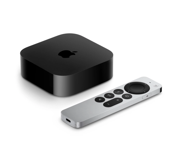 <h2>Apple TV 4K 128GB (3. generacji)</h2>Apple TV 4K pomoże zwiększyć możliwości każdego telewizora, rozszerzając je o dostęp do szerokiego wachlarza usług Apple i nie tylko. Oglądaj filmy, słuchaj muzyki, a nawet prowadź wideorozmowy na dużym ekranie!Odtwarzanie filmów w rozdzielczości 4K i z wykorzystaniem technologii Dolby VisionWysoki kontrast i dopasowana jasność z HDR10+ oraz przestrzenny dźwięk zapewniany przez Dolby AtmosBieżący dostęp do treści z Apple TV+, Apple Music, Apple Arcade i apki Zdjęcia – ulubiona rozrywka w zasięgu rękiWygodne sterowanie za pomocą dołączonego pilota Apple TV Remote 3. generacji ze złączem USB‑CFaceTime na wielkim ekranie – nowoczesne wideorozmowy z bliskimi i kontrahentami<h2>Poznaj odtwarzacz multimedialny Apple TV 4K</h2> Doskonała rozdzielczośćOdtwarzacz multimedialny Apple TV 4K odpowiada na oczekiwania współczesnych miłośników dobrego kina i nie tylko. Dzięki rozdzielczości 4K i obsłudze standardu Dolby Vision oferuje ostry, szczegółowy obraz o naturalnych kolorach i prawdziwie głębokiej czerni. W związku z tym każda scena z filmu czy serialu dostarczy niezapomnianych wrażeń wizualnych. Poczuj się jak w kinieApple TV 4K sprawi, że oglądanie filmów w domu będzie tak samo ekscytujące, jak w kinowym fotelu! Technologia HDR10+ zadba o odpowiednią jasność, kontrast i nasycenie kolorów, oferując sceny pełne realizmu, natomiast standard Dolby Atmos1 wygeneruje przestrzenny dźwięk, który umieści Cię w centrum wydarzeń rozgrywających się na ekranie. Centrum rozrywkiJedno urządzenie zapewni Ci swobodny dostęp do różnego rodzaju rozrywki! Apple TV 4K współpracuje z platformami Apple TV+, Apple Music, Apple Arcade i aplikacją Zdjęcia2. Dzięki temu w dowolnym momencie możesz sięgnąć po ulubione utwory muzyczne, najlepsze kinowe hity, relaksujące gry wideo lub wspomnienia z wirtualnych albumów. Nowoczesne rozwiązaniaWraz z urządzeniem Apple TV 4K otrzymasz pilot Apple TV Remote (3. generacji), dzięki któremu możesz wygodnie sterować odtwarzaczem bez konieczności wstawania z fotela. Dotykowa powierzchnia sprawia, że obsługa pilota jest intuicyjna i bardzo wygodna. Ponadto Apple TV 4K może być wykorzystany jako hub do systemu inteligentnego domu3. Do wideorozmówOdtwarzacz multimedialny Apple TV 4K odmieni też jakość prowadzenia wideorozmów z bliskimi lub współpracownikami! Dzięki obsłudze aplikacji FaceTime4 możesz oglądać swoich rozmówców na dużym ekranie telewizora. Wyraźnie więc zobaczysz osoby, za którymi tęsknisz lub łatwiej odczytasz emocje z twarzy potencjalnych kontrahentów!<h2>Zawartość opakowania Apple TV 4K</h2>W opakowaniu Odtwarzacz multimedialny Pilot Kabel zasilający Instrukcja obsługiApple – marka godna zaufaniaTopowy producentLider w dziedzinie elektroniki użytkowejZnak jakościJedna z najlepiej rozpoznawalnych marek świataLata doświadczeńAmerykańska marka wprowadzona na rynek w 1976 rokuInformacje dodatkowe 1. Działa ze zgodnymi treściami w obsługiwanych aplikacjach na kompatybilnych urządzeniach. Nie wszystkie treści są dostępne w jakości 4K, HDR, HDR10+ lub Dolby Vision. Nie wszystkie treści obsługują dźwięk surround 5.1 i 7.1 lub standard Dolby Atmos. Jakość odtwarzania zależy od sprzętu i połączenia z internetem.2. Dostęp do niektórych treści może wymagać subskrypcji.3. Wymaga zgodnego akcesorium do inteligentnego domu. Akcesoria są sprzedawane oddzielnie. Wymaga akcesorium z obsługą technologii HomeKit lub Matter. Akcesoria do inteligentnego domu są sprzedawane oddzielnie.4. Funkcja dostępna na Apple TV 4K (2. lub nowszej generacji) z najnowszym systemem operacyjnym.