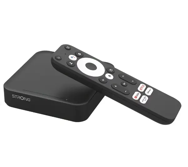 <p>Strong LEAP-S3 4K</p><p>Wygodny dostęp do rozrywki</p><p>Strong LEAP-S3 4K zapewnia szybki dostęp do Twoich ulubionych aplikacji dzięki przejrzystemu interfejsowi Google TV i wygodnemu pilotowi z dedykowanymi przyciskami skrótów. Wystarczy jedno kliknięcie, aby uruchomić Netflix, YouTube czy Prime Video i zanurzyć się w świecie rozrywki na dużym ekranie.</p><p></p><p>Potężna technologia</p><p>LEAP-S3 4K obsługuje obraz w 4K UHD (Ultra High Definition, 3840 × 2160 pikseli) oraz technologie Dolby Vision i Dolby Atmos, zapewniając pełną głębię kolorów i przestrzenny dźwięk. Filmy i seriale prezentują się spektakularnie – tak jak w kinie, ale w Twoim salonie.</p><p>Prosty w instalacji</p><p>LEAP-S3 uruchomisz w zaledwie kilka chwil: podłączasz box do telewizora, łączysz z internetem i rozpoczynasz streaming. Intuicyjny interfejs Google TV prowadzi przez konfigurację krok po kroku, dzięki czemu instalacja jest szybka i bezproblemowa.</p> <p></p><p>Kinowe brzmienie</p><p>Strong LEAP-S3 4K zapewnia wciągające wrażenia audiowizualne, łącząc czytelny interfejs Google TV z dynamicznym, przestrzennym dźwiękiem. Oglądanie filmów i seriali na dużym ekranie staje się wyjątkowo immersyjne — jak w sali kinowej, ale w zaciszu Twojego salonu.</p><p></p><p>Udostępniaj obraz z telefonu dzięki Google Cast</p><p>LEAP-S3 4K obsługuje Google Cast, umożliwiając szybkie przesyłanie zdjęć, filmów i aplikacji z telefonu na duży ekran. To idealny sposób na wygodne prezentowanie treści podczas spotkań, imprez lub rodzinnego oglądania.</p><p></p><p>Praktyczne złącza</p><p>Strong LEAP-S3 został wyposażony w komplet najważniejszych złączy: optyczne SPDIF (Sony Philips Digital Interface Format), HDMI (High Definition Multimedia Interface), sieciowe oraz port USB (Universal Serial Bus). Dzięki temu bez problemu podłączysz telewizor, router internetowy oraz system audio, tworząc własne centrum rozrywki.</p><p></p><p> </p><p></p>