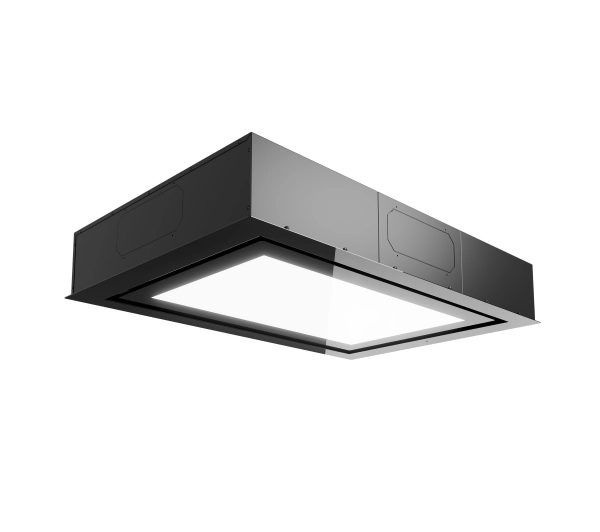 Rozwiązanie doskonale sprawdzi się w kuchni o niskich sufitach, ponieważ nie zajmuje dużo miejsca. Jego dyskretny montaż sprawia, że staje się on niemal niewidoczny, zapewniając efektywną wentylację i usuwanie oparów. Okap sufitowy wyróżnia się eleganckim, minimalistycznym designem, który podkreśli wnętrze twojej kuchni.