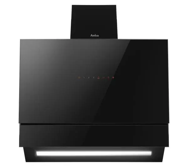 Funkcje dodatkowe: automatyczna współpraca z płytą indukcyjną Amica HoodConnect, booster, czasowe wyłączenie, regulacja natężenia oświetlenia, wybór koloru światła, zasysanie krawędziowe