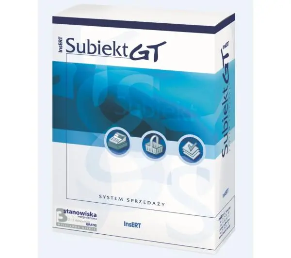 Subiekt GT - rozszerzenie o następne 3 stanowiskaSubiekt GT to nowoczesny system sprzedaży stworzony z myślą o firmach, które poszukują sprawnego narzędzia wspomagającego całościową obsługę działu handlowego, sklepu, punktu usługowego, rzemieślniczego, itp.Dzięki bogatej funkcjonalności i prostej, intuicyjnej obsłudze, program sprawdza się w każdej sytuacji. Zastosowane technologie i rozwiązania biznesowe sprawiają, że Subiekt to najczęściej w Polsce wybierany program do wspomagania sprzedaży.Subiekt GT jest sprawnym i szybkim systemem wyposażonym w najnowsze rozwiązania interfejsowe czyniące go programem bardzo ergonomicznym i przyjaznym dla użytkownika. Jednocześnie jego wszechstronność i możliwości konfiguracji czynią go produktem niemal dla każdego.