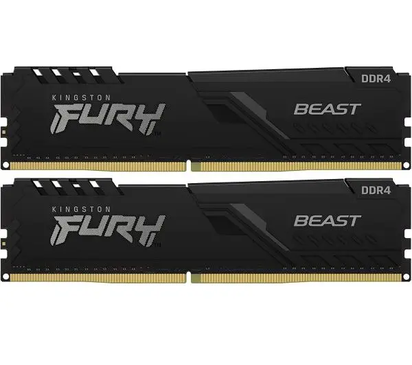 <h2>Kingston FURY Beast 16GB (2 x 8GB) 3600 CL17 Czarny</h2> Kingston FURY Beast to pamięć RAM (Random Access Memory) w standardzie DDR4 (czwarta generacja RAM), gotowa na pełną współpracę z procesorami AMD Ryzen™. Ten moduł zwiększy wydajność Twojego komputera i poprawi jego niezawodność nawet przy dużych obciążeniach. Standard DDR4 to wyższa przepustowość, niższe zużycie energii oraz większa wydajność w grach, grafice i video Obsługa profili Intel® XMP (Extreme Memory Profile) i certyfikat XMP pozwalają na wygodne i proste podkręcanie pamięci do optymalnych ustawień Przystosowanie do współpracy z procesorami AMD Ryzen™ - stabilne działanie na wysokich częstotliwościach Niskoprofilowy radiator skutecznie chłodzi, efektownie się prezentuje i jest łatwy w instalacji <h2>Poznaj pamięć RAM Kingston FURY Beast</h2> Zwiększenie wydajności do DDR4 Pamięć RAM Kingston FURY Beast w standardzie DDR4 wykazuje wyższą przepustowość i niższe zużycie energii elektrycznej niż poprzednie generacje. Możliwość przesyłania większej ilości danych w tym samym czasie przekłada się na lepsze działanie wymagających aplikacji. Duża pojemność modułów, częstotliwość taktowania wynosząca aż 3600 MHz oraz opóźnienie CL17 (oznaczenie opóźnienia CAS - Column Address Strobe latency w pamięci RAM) czynią tę pamięć dobrym wyborem przy wymagających grach, renderowaniu grafiki i edycji video. Obsługa profili Intel® XMP i certyfikat XMP Zgodna z technologią Intel® XMP Kingston FURY Beast pozwala na szybkie i wygodne podkręcanie pamięci RAM w komputerach wyposażonych w procesory marki Intel. Nie musisz już zmieniać ręcznie ustawień w BIOS-ie (podstawowy system wejścia-wyjścia). Wystarczy włączyć profil XMP, by częstotliwość taktowania, timingi i napięcie oraz inne parametry pamięci zostały dostosowane do wartości zoptymalizowanych przez producenta. Profile XMP (Extreme Memory Profile) pozwalają na uzyskanie szybkości do 3600MT/s. Współpraca z procesorami AMD Ryzen™ Pamięć RAM przystosowana do współpracy z wysokiej klasy procesorami Ryzen daje pewność integralności z systemami opartymi na rozwiązaniach AMD. Taką kompatybilność wykazuje Kingston FURY Beast – testowana i zoptymalizowana pod kątem częstotliwości taktowania i stabilności, pozwala osiągnąć wysoką wydajność w wymagających grach i zaawansowanych aplikacjach na komputerach wyposażonych w procesory tego producenta. Niskoprofilowy radiator Wybierz moduł, który pomoże Ci stworzyć efektowne stanowisko do pracy i rozrywki. Niskoprofilowy radiator zastosowany w pamięci RAM Kingston FURY Beast pomaga w zachowaniu optymalnej temperatury podzespołów, co przekłada się na stabilną pracę nawet w warunkach dużego obciążenia. Taki profil to też łatwiejsza instalacja w małych obudowach – radiator nie koliduje z innymi komponentami, takimi jak karta graficzna czy chłodzenie procesora. <h2>Zawartość opakowania Kingston FURY Beast</h2> W opakowaniu Pamięć Kingston – marka godna zaufania Bogate doświadczenie Marka została wprowadzona na rynek w 1987 roku Przyjazne technologie Praktyczne rozwiązania w dziedzinie pamięci i przechowywania danych Pomysłowość i elastyczność Dostosowanie do zmieniających się trendów