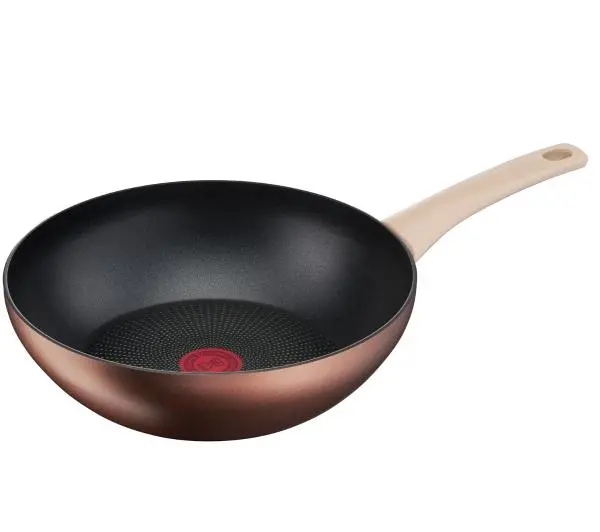 <h2>Tefal Eco-Respect 28 cm G2541953</h2><p>Patelnia TEFAL Eco-Respect G2541953 o średnicy 28 cm, wykonana z recyklowanego aluminium, wyróżnia się technologią Thermo-Fusion™, wskaźnikiem Thermo-Signal™ i powłoką Titanium 2 X Trwalszą.</p><h2>Poznaj Tefal Eco-Respect G2541953</h2><a></a><h3>Z MYŚLĄ O ŚRODOWISKU</h3><p>Tefal Eco-Respect G2541953 jest wykonana z recyklowanego aluminium, którego wyprodukowanie pochłania do 90% energii mniej w porównaniu z tradycyjnym procesem wytwarzania tego materiału. Ponadto wszystkie elementy akcesorium nadają się do ponownego przetworzenia, co sprawia, że kupując tę patelnię, wspierasz ochronę środowiska naturalnego.</p><a></a><h3>NIEPRZYWIERAJĄCA POWŁOKA</h3><p>Chcesz ograniczyć ilość tłuszczu w diecie, ale obawiasz się przypalania składników? Aby ułatwić Ci wprowadzanie zmian w diecie i samo smażenie, wewnętrzna strona Tefal Eco-Respect G2541953 jest pokryta nieprzywierającą powłoką Titanium 2 X Trwalszą, która jest dwukrotnie wytrzymalsza od swojej poprzedniczki, czyli Titanium. Cząsteczki tytanu zmniejszają ryzyko uszkodzeń i spowalniają zużycie powłoki odpornej na ścieranie.</p><a></a><h3>FRANCUSKA JAKOŚĆ</h3><p>Tefal Eco-Respect G2541953 jak i inne akcesoria kuchenne Tefal są projektowane i produkowane we Francji. Proces technologiczny uwzględnia zarówno ekologiczne pochodzenie materiału, jak i nowoczesne rozwiązania, które ułatwiają gotowanie. Wyroby marki Tefal pozostają w doskonałej kondycji przez lata intensywnego użytkowania.</p><a></a><h3>TECHNOLOGIA THERMO-FUSION™</h3><p>Wynajmujesz mieszkanie, chcesz odświeżyć aranżację kuchni, myślisz o zakupie nowej kuchenki? Ten model pozostanie z Tobą po każdej zmianie! Patelnia ma dno Thermo-Fusion™, które równomiernie rozprowadza ciepło i jest kompatybilne z różnymi kuchenkami oraz płytami: indukcyjnymi, gazowymi, elektrycznymi, ceramicznymi i halogenowymi.</p><a></a><h3>WYGODNE CZYSZCZENIE</h3><p>Lubisz gotowanie, ale męczy Cię czyszczenie naczyń i akcesoriów kuchennych? Ręczne usuwanie zabrudzeń jest czasochłonne, zwłaszcza jeśli masz do czynienia z zaschniętymi plamami. Na szczęście patelnia Tefal Eco-Respect G2541953 nadaje się do mycia w zmywarce, dzięki czemu nie przysporzy Ci dodatkowej pracy po przygotowaniu posiłku.</p><a></a><h3>BEZPIECZNA RĄCZKA</h3><p>Nawet jeśli rozgrzejesz patelnię do wysokiej temperatury, ergonomiczna rączka pozostanie chłodna w dotyku, nie narażając Cię na przypadkowe oparzenie dłoni. Otwór w rączce umożliwia zawieszenie patelni na haku kuchennym. Elegancka powłoka w odcieniu jasnego beżu świetnie komponuje się z zewnętrznym wykończeniem akcesorium i nadaje mu oryginalny wygląd.</p><h2>Patelnia Tefal Eco-Respect G2541953 z bliska</h2><h3>1 WSKAŹNIK THERMO-SIGNAL™</h3><p>Thermo-Signal™ to wskaźnik w formie czerwonego koła z symbolem klepsydry, które jest ulokowane na środku patelni. Kiedy staje się intensywnie czerwony, a klepsydra znika, to oznacza, że dno osiągnęło odpowiednią temperaturę i możesz zacząć smażyć składniki.</p><h3>2 KSZTAŁT WOKA</h3><p>Patelnia Tefal Eco-Respect G2541953 przypomina wok do przygotowywania orientalnych potraw. Spora głębokość, wysokie ścianki i pochyłe brzegi ograniczają ryzyko pobrudzenia płyty grzewczej. Ewentualne zabrudzenia są łatwe do usunięcia dzięki specjalnej powłoce.</p><h3>3 ZDROWA KUCHNIA</h3><p>Tefal Eco-Respect G2541953 jest wykonana z materiałów pozbawionych substancji, które mogłyby zaszkodzić zdrowiu użytkowników i środowisku naturalnemu – PFOA (kwasu perfluorooktanowego), kadmu i ołowiu.</p><h2>W opakowaniu Tefal Eco-Respect G2541953</h2><h6>1Patelnia</h6><h2>Tefal – marka godna zaufania</h2><p>Francuski producent technologii ułatwiających gotowanie</p><p>6500 punktów serwisowych na całym świecie i dostęp do części zamiennych przez 10 lat</p><p>Ponad 60 lat doświadczenia w rozwoju artykułów gospodarstwa domowego</p>