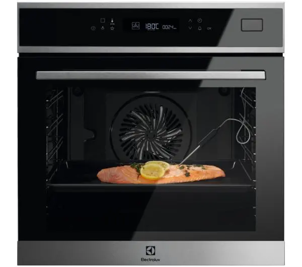 Twoja przeglądarka nie wspiera video ProfesjonalnyGenerator ParyGenerator pary w piekarnikach parowych Electrolux posiada zaawansowaną technologię zaczerpniętą z urządzeń profesjonalnych. Dzięki temu może wytwarzać 4 rodzaje par od 25% do 100%, w zależności od sposobu przyrządzenia potrawy (pieczenia, przypiekania, gotowania na parze ryb i warzyw, a nawet gotowania sous-vide).Doskonałe potrawyza każdym razemPiekarnik z termosondą gwarantuje doskonałe efekty pieczenia za każdym razem. Termosonda monitoruje temperaturę potrawy i umożliwia wybór sposobu jej przygotowania. Teraz przygotowanie kaczki, pieczeni czy lasagni nie będzie już żadnym problemem. Czyszczenie parowe AquaCleanCzyszczenie piekarnika nie musi być uciążliwe – w przypadku naszego urządzenia wyręczy Cię w tym para. Para wodna rozmiękcza zaschnięte zabrudzenia w komorze piekarnika, co ułatwia ich usunięcie. Łatwe i intuicyjne pieczenieDzięki funkcji Gotowanie Wspomagane szybko i bez zastanowienia przygotujesz dowolne danie. Wystarczy, że wybierzesz potrawę, a piekarnik dostosuje właściwy program i czas. Najlepsze przepisy dodaj do ulubionych. Dodatkowo termosonda monitoruje temperaturę wnętrza potrawy, bez ryzyka niedopieczenia czy przepieczenia. Gdy potrawa jest gotowa, sensor zasygnalizuje zakończenie procesu i wyłączy piekarnik. Pieczenie na kilku poziomachPojemna komora i blachy w rozmiarze XL ułatwiają jednoczesne pieczenie na 3 poziomach i przygotowanie posiłku dla całej rodziny. Dzięki takiemu rozwiązaniu możesz nie tylko szybko przygotować kilka potraw w tym samym czasie, ale przede wszystkim możesz zaoszczędzić czas i energię. Nagrzewanie piekarnika40% szybciejTryb szybkiego nagrzewania piekarnika pozwala o 40% skrócić czas przygotowania piekarnika do pracy w wymaganej temperaturze. Krótsza faza nagrzewania w porównaniu z tradycyjnym urządzeniem pozwoli Ci zamienić wolne chwile w niezapomniane posiłki. Piekarnik z termoobiegiemSurroundCook®piecze zawsze równomiernieTermoobieg sprawia, że potrawy mogą być przygotowywane w niższej o 20% temperaturze w porównaniu do tradycyjnych przepisów. Dodatkowo nie trzeba obracać potraw czy przekładać na inny poziom. To realna oszczędność czasu i energii. Ciche domykanie Bezpieczne w dotyku drzwi Prowadnice teleskopowe