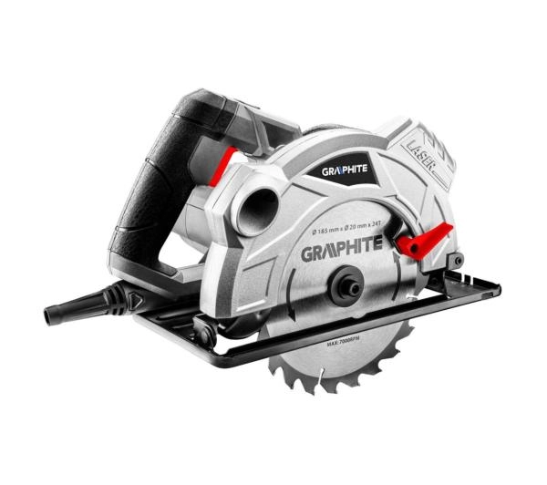 Pilarka tarczowa GRAPHITE z silnikiem o mocy 1500W, umożliwiającym pracę z prędkością do 5800 obrotów na minutę. Urządzenie przystosowane jest do pracy z tarczami o średnicy zewnętrznej 185 mm i pozwala na wykonywanie cięć w materiałach o grubości do 65 mm. Istnieje także możliwość cięcia pod kątem do 45°. Regulacja kąta oraz głębokości cięcia odbywa się bez użycia narzędzi - w ustawieniach parametrów pomagają specjalne podziałki. O bezpieczeństwo operatora dba dwustopniowy włącznik zabezpieczający przed przypadkowym uruchomieniem. Wygodne i pewne prowadzenie elektronarzędzia zapewnia dodatkowa kabłąkowa rękojeść z szeroką powierzchnią chwytu. W widocznym dla operatora miejscu umieszczono wskaźnik informujący o podłączeniu elektronarzędzia do sieci i jego gotowości do pracy. Główna osłona tarczy wykonana została ze stopu aluminium. Zintegrowany z urządzeniem wskaźnik laserowy ułatwia wyznaczanie kierunku cięcia. Znajdująca się na wyposażeniu prowadnica równoległa pozwala na precyzyjne prowadzenie pilarki wzdłuż krawędzi materiału. Dostarczana z prowadnicą równoległą, kluczem regulacyjnym oraz tarczą do cięcia.