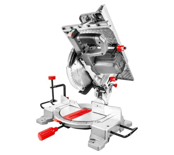 Wysokiej klasy pilarka uniwersalna GRAPHITE o mocy 1600W, przeznaczona do cięcia i obróbki drewna oraz materiałów drewnopodobnych. Jest to urządzenie typu „2 w 1” - może ono pełnić funkcję pilarki ukosowej lub pilarki stołowej, co pozwala na wykonywanie cięć zarówno poprzecznych, jak i wzdłużnych. Istnieje możliwość cięcia pod kątem od 0 do 45º w obu płaszczyznach. Maksymalna prędkość obrotowa tarczy tnącej wynosi 4800 obrotów na minutę. Stół roboczy urządzenia został wykonany ze stopu aluminium, co wpływa zarówno na jego wytrzymałość, jak i na precyzję wykonywanych cięć. Bezpieczeństwo oraz porządek w miejscu pracy zapewni włącznik elektromagnetyczny oraz system odprowadzania wiórów. W zestawie z pilarką znajdują się: docisk pionowy, kątomierz nastawny z prowadnicą poprzeczną, prowadnica równoległa, wkładka odprowadzania wiórów, popychacz.