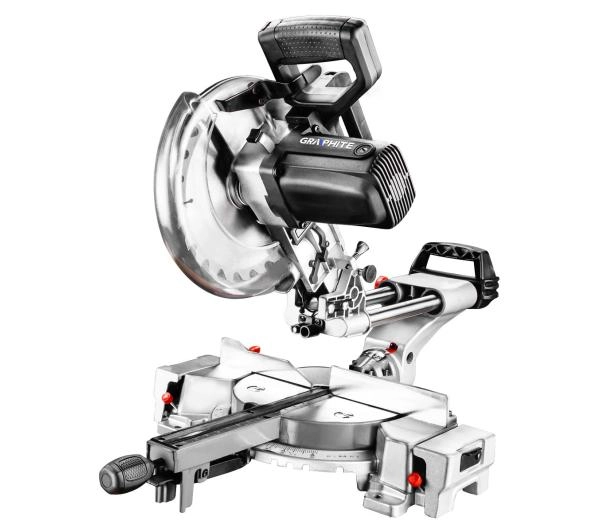 Pilarka ukosowa GRAPHITE z funkcją posuwu głowicy, napędzana silnikiem o mocy 1800W, przeznaczona do precyzyjnego cięcia dużych elementów drewna i materiałów drewnopochodnych.Urządzenie posiada możliwość regulacji wsporników obrabianego materiału, a także opcję szybkiego ustawienia popularnych kątów cięcia. Zakres cięcia kątowego i ukosowego wynosi od 0° do 45°. Pilarka o zwartej i stabilnej konstrukcji, wykonanej ze stopu aluminium, posiada metalową blokadę wrzeciona.Dla komfortu i bezpieczeństwa rękojeść główna urządzenia została pokryta antypoślizgowym materiałem. Precyzyjne ustawienie ciętego materiału ułatwi wskaźnik laserowy zintegrowany z urządzeniem. Istnieje możliwość samodzielnej wymiany szczotek węglowych od zewnątrz. W zestawie z pilarką znajdują się: worek na pył, zacisk pionowy do trzymania obrabianego materiału i klucz montażowy. Zgodność z europejskimi standardami zapewnia certyfikat CE.