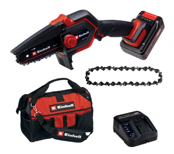 Wyposażenie: instrukcja obsługi, klucz imbusowy, ładowarka, łańcuch, olej do smarowania, osłona, prowadnica, torba