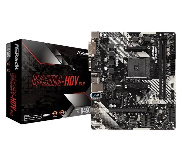 <h2>ASrock B450M-HDV R4.0</h2>ASrock B450M-HDV R4.0 to solidny wybór do komputerów z procesorami AMD Ryzen, oferujący wsparcie dla pamięci DDR4. Płyta główna wyposażona w technologię AMD StoreMI przyspieszającą działanie systemu, sprawdzi się do budowy funkcjonalnych komputerów.Złącze PCIe Gen3 x4 Ultra M.2 zapewnia błyskawiczny transfer danychTechnologia AMD StoreMI przyspiesza działanie systemu, łącząc pamięć SSD i HDDWłókno szklane w konstrukcji płyty zwiększa jej trwałość i odporność na uszkodzeniaPłyta wspiera funkcję Triple Monitor, umożliwiając podłączenie trzech monitorów jednocześnieStabilne i efektywne zasilanie komponentów dzięki technologii zasilania Digi PowerASRock Full Spike Protection chroni płytę główną przed nagłymi skokami napięcia<h2>Poznaj płytę główną ASrock B450M-HDV R4.0</h2> Efektywne złącza PCIe Gen3Złącze PCIe Gen3 x4 Ultra M.2 w płycie głównej ASRock B450M-HDV R4.0 zapewnia imponujący transfer danych do 32 Gb/s, co pozwala na błyskawiczne odczyty i zapisy. Urządzenie obsługuje nośniki SATA3 6 Gb/s M.2, oferując szybki dostęp do danych i wysoką wydajność w codziennym użytkowaniu. Dzięki kompatybilności z adapterem ASRock U.2, możesz zainstalować najszybsze dyski SSD U.2 PCIe Gen3 x4, które zapewniają jeszcze większą niezawodność. Technologia AMD StoreMITechnologia AMD StoreMI to innowacyjne rozwiązanie, które łączy szybkość pamięci SSD i pojemność dysków HDD w jedno logiczne urządzenie. Dzięki niej system automatycznie przenosi najczęściej używane pliki i aplikacje na szybszy dysk SSD, co znacząco przyspiesza ładowanie danych i skraca czas uruchamiania systemu. Obwód z włókna szklanegoObwód drukowany w ASRock B450M-HDV R4.0 wykonany z włókna szklanego o wysokiej gęstości zapewnia większą trwałość i odporność płyty na uszkodzenia. Włókno szklane redukuje wielkość szczelin między warstwami PCB, co znacząco poprawia wytrzymałość konstrukcji. Dodatkowo, ta innowacyjna technologia chroni płytę główną przed przepięciami. Funkcja Triple MonitorASRock B450M-HDV R4.0 wspiera funkcję Triple Monitor - możesz podłączyć do niej aż trzy monitory i korzystać z nich jednocześnie. Dzięki temu zwiększysz swoją efektywność pracy, rozgrywki czy multitaskingu. Nie potrzebujesz do tego dodatkowej karty graficznej. Technologia Digi PowerTechnologia Zasilania Digi Power zapewnia precyzyjne i stabilne zarządzanie zasilaniem, co wpływa na wydajność całego systemu. Dzięki cyfrowemu sterowaniu napięciem, ASRock B450M-HDV R4.0 efektywnie dostosowuje zasilanie do potrzeb komponentów, minimalizując straty energii i zapewniając ich długowieczność. ASRock Full Spike ProtectionZaawansowana technologia ASRock Full Spike Protection zabezpiecza płytę główną przed uszkodzeniami spowodowanymi nagłymi skokami napięcia. Dzięki zastosowaniu odpowiednich komponentów ochronnych, system minimalizuje ryzyko przepięć, które mogłyby zniszczyć wrażliwe elementy płyty. Bogaty zestaw portówPłyta główna ASRock B450M-HDV R4.0 oferuje bogaty zestaw portów, zapewniając szeroką gamę opcji łączności. Dzięki portom USB 3.1, złączom SATA3 oraz wyjściom HDMI, VGA i DVI, możesz łatwo podłączyć różne urządzenia peryferyjne, takie jak dyski twarde, monitory czy urządzenia audio. <h2>Zawartość opakowania ASrock B450M-HDV R4.0</h2>W opakowaniu Płyta główna I/O Shield 2 x SATA Data Cables Screw for M.2 Socket Instrukcja obsługi SterownikiASrock – marka godna zaufaniaProdukty dla wymagającychZaawansowane rozwiązania dla miłośników technologiiLider płyt głównychMarka specjalizuje się w produkcji wydajnych płyt głównychLata doświadczeńFirma dostarcza swoim odbiorcom płyty główne od wielu lat i brała udział w tworzeniu obowiązujących standardów
