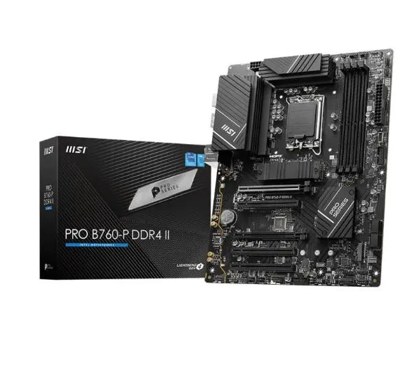 <h2>MSI PRO B760-P DDR4 II</h2>MSI PRO B760-P DDR4 II to odpowiedź na potrzeby profesjonalnych użytkowników, dla których priorytetem jest wydajna praca wielozadaniowa. Ta płyta główna wykorzystuje system chłodzenia klasy premium i oferuje liczne opcje łączności.Płyta główna obsługuje procesory Intel® Core ™ 14./13./12. generacji oraz układy Intel® Pentium® Gold i Celeron®Możliwość podłączenia szybkiej pamięci RAM w standardzie DDR4Innowacyjne rozwiązania termiczne zapewniają stabilną pracę nawet przy dużym obciążeniu6-warstwowa płytka drukowana wykonana z materiałów najwyższej jakościZłącza PCIe 4.0 oraz Lightning Gen 4 x4 M.2 pozwalają osiągnąć niesamowicie wysokie prędkości transferu danychZwiększona stabilność i szybkość USB z technologią Intel Turbo USBWzmocniony system zasilania wraz z technologiami Core Boost i Memory Boost zapewniają wysoką wydajnośćSzybka sieć 2.5G LAN dla bezpiecznego i stabilnego połączenia<h2>Poznaj płytę główną MSI PRO B760-P DDR4 II </h2> Dla profesjonalistówPłyta główna MSI PRO B760-P DDR4 II została stworzona z myślą o profesjonalnych zastosowaniach w różnych środowiskach. Jeśli zależy ci na ponadprzeciętnej wydajności i płynnej pracy wielozadaniowej, to dobry wybór dla ciebie. Prezentowana płyta wspiera procesory Intel® Core™ 14./13./12. generacji, a także układy Intel® Pentium® Gold i Celeron® dla gniazda LGA 1700. Obsługa pamięci DDR4Ciesz się płynnym działaniem systemu operacyjnego i programów komputerowych, korzystając z szybkiej pamięci RAM. MSI PRO B760-P DDR4 II obsługuje dwukanałową pamięć typu DDR4 o częstotliwości taktowania do 5333+MHz w trybie OC. Dzięki temu możesz uzyskać jeszcze większą przepustowość i wydajność energetyczną. Zaawansowane chłodzenieMSI PRO B760-P DDR4 II wykorzystuje zaawansowane rozwiązania termiczne. Rozbudowany radiator zapewnia większą powierzchnię odprowadzania ciepła, a dzięki podkładkom MOSFET o wydajności 7 W/mK i dodatkowym podkładkom dławików, płyta może działać stabilnie nawet przy pełnym obciążeniu. Osłona M.2 Shield Frozr pozwala na bezpieczną i wydajną pracę napędów SSD. 6-warstwowa płytka drukowanaDo produkcji MSI PRO B760-P DDR4 II zostały użyte materiały najwyższej jakości. W tej płycie głównej zastosowano solidną, 6-warstwową płytkę drukowaną z dwoma uncjami miedzi rozmieszczonej warstwowo. Dodatkowe warstwy wzmacniają stabilność sygnału i zapewniają większą żywotność. Błyskawiczne prędkościPłyta główna MSI PRO B760-P DDR4 II umożliwia podłączenie wysokowydajnych podzespołów i daje dużą elastyczność w tworzeniu konfiguracji. Gniazdo PCIe 4.0 wraz z Lightning Gen 4 x4 M.2 zapewniają imponująco szybkie transfery danych, dzięki czemu możesz rozszerzać pamięć masową i cieszyć się płynnym działaniem swojego PC. Stabilność termicznaPrezentowana płyta główna jest gotowa na wyzwania związane z obsługą wysokiej klasy procesorów. MSI PRO B760-P DDR4 II wykorzystuje 12+1-fazowy, dwuszynowy system zasilania Duet Rail Power z technologią P-PAK oraz 8- i 4-pinowe złącza zasilania procesora, co umożliwia szybkie i stabilne dostarczanie prądu. Technologie Core Boost oraz Memory Boost tworzą świetne warunki do podkręcania procesora i pamięci. Technologia Turbo USBMSI PRO B760-P DDR4 II oferuje szereg złączy USB, które umożliwiają podłączenie rozmaitych urządzeń peryferyjnych. Z tą płytą główną stworzysz konfigurację odpowiadającą najbardziej wyśrubowanym wymaganiom. Technologia Turbo USB oparta na kontrolerze Intel USB 3.2 Gen2 zapewnia niezawodną stabilność i wyjątkowe prędkości USB, dzięki czemu dane są przesyłane w błyskawicznym tempie. Szybka i bezpieczna sieć LANBez względu na to, czy zależy ci na płynnej rozgrywce online, szybkim pobieraniu plików, czy bezproblemowym strumieniowaniu na żywo, potrzebujesz szybkiego i stabilnego połączenia sieciowego. Płyta główna MSI PRO B760-P DDR4 II obsługuje sieć LAN o przepustowości 2,5 Gbit/s, zapewniając wydajność wymaganą zarówno podczas użytku profesjonalnego, jak i multimedialnego. Dźwięk o jakości studyjnejZ MSI PRO B760-P DDR4 II możesz delektować się szczegółowym i czystym brzmieniem podczas słuchania muzyki lub grania w ulubione tytuły. Innowacyjny system AUDIO BOOST z procesorem dźwiękowym o wysokiej rozdzielczości, zaawansowanymi kondensatorami audio, separacją sygnałów oraz technologią redukującą trzaski, dostarcza wciągających wrażeń słuchowych i zapewnia efekt pełnego zanurzenia w grze czy filmie.<h2>Zawartość opakowania MSI PRO B760-P DDR4 II </h2>W opakowaniu Płyta główna Kable SATA I/O Shield Instrukcja obsługiMSI – marka godna zaufaniaOd graczy dla graczyWysoka jakość doceniana przez profesjonalnych graczySpecjaliści w produktach gamingowychMarka specjalizująca się w produkcji sprzętu komputerowego dla graczyMarka założona w 1986 rokuDoświadczenie, które owocuje wyjątkowymi produktami