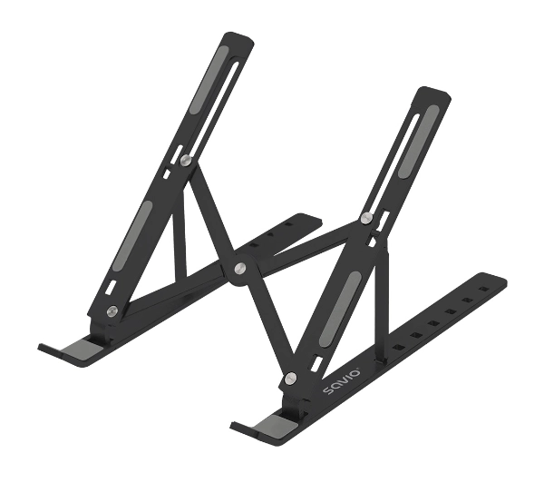 <h2>Przenośna podstawka pod laptop i tablet PB-05</h2><p>Przenośna podstawka Savio PB-05 została zaprojektowana tak, aby zapewnić maksymalną wygodę podczas korzystania z laptopa lub tabletu – zarówno w warunkach domowych, jak i w podróży. Dzięki 7-stopniowej regulacji kąta nachylenia (od 0° do 40°) z łatwością ustawisz odpowiednią wysokość i kąt urządzenia, dopasowując je do własnych potrzeb i pozycji.</p> <h3>Solidna, lekka i kompaktowa</h3><p>Konstrukcja podstawki PB-05 powstała z wytrzymałego aluminium oraz gumy antypoślizgowej, co gwarantuje stabilność i odporność na uszkodzenia przy jednoczesnej lekkości. Waga wynosi jedynie 245 g, a po złożeniu podstawka zmieści się w każdej torbie czy plecaku. To doskonały wybór dla osób, które często podróżują i chcą zachować komfort pracy w każdych warunkach..</p><h3>Lepsza wentylacja - niższa temperatura</h3><p>Otwarta konstrukcja podstawki wspiera naturalny przepływ powietrza, co poprawia chłodzenie urządzenia. Dzięki temu laptop lub tablet działa stabilniej i jest skuteczniej chroniony przed przegrzewaniem – nawet przy dużym obciążeniu.</p><h3>Uniwersalne dopasowanie do urządzeń do 18 cali</h3><p>Podstawka Savio PB-05 jest kompatybilna z laptopami i tabletami o przekątnej ekranu do 18 cali. Jej stabilna budowa zapewnia bezpieczne podparcie dla szerokiej gamy urządzeń, niezależnie od ich producenta.</p> <h2>Przenośna podstawka pod laptop i tablet PB-05</h2> Podstawka PB-05 podnosi ekran laptopa do optymalnej wysokości, co wspiera prawidłową postawę ciała i zmniejsza zmęczenie podczas długiej pracy. Minimalistyczna konstrukcja z matowym wykończeniem sprawia, że podstawka PB-05 prezentuje się elegancko i pasuje do każdego biurka. <h2>Uniwersalne dopasowanie – do 18 cali</h2><p>Podstawka Savio PB-05 jest kompatybilna z urządzeniami o przekątnej ekranu do 18 cali, co czyni ją niezwykle uniwersalną. Stabilna konstrukcja zapewnia pewne podparcie dla szerokiej gamy laptopów i tabletów, niezależnie od producenta.</p>