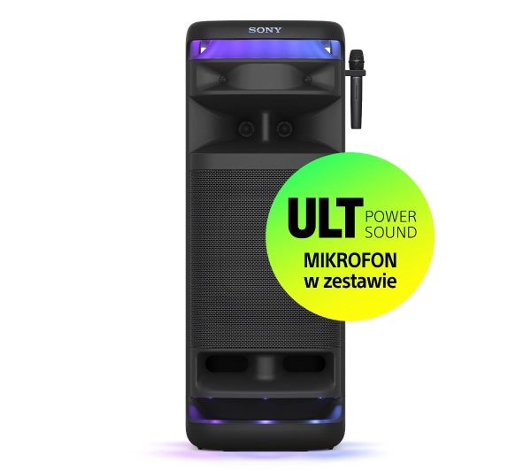 <h3>DOSKONAŁY DŹWIĘK, POTĘŻNY BAS</h3><p>Bazując na dziesięcioleciach doświadczenia Sony w dziedzinie dźwięku, ULT TOWER 10 pozwala doświadczyć klubowego brzmienia, gdziekolwiek się ustawisz. </p><p> </p><p>Głośnik X-Balanced ma unikalny kształt zapewniający moc, klarowność głosu i pulsujący bas, a nasze wysokiej jakości głośniki wysokotonowe rozprzestrzeniają go w każdy zakątek imprezy.</p><p>Jeśli masz drugi ULT TOWER 10, użyj funkcji Stereo Pair, aby stworzyć imponujący system dźwiękowy z lewym i prawym kanałem.</p><h3>WCIŚNIJ PRZYCISK ULT, POCZUJ BAS</h3><p>Przycisk ULT aktywuje dwa nowe tryby reprodukcji basów. </p><p>Tryb Deep Bass zwiększa poziom wibrujących niższych częstotliwości. </p><p>Tryb Attack Bass podnosi ciśnienie akustyczne i dodaje brzmieniu energii, która pobudzi wszystkich do ruchu. </p><p> </p><h3>CZYSTY DŹWIĘK, NAWET W HAŁAŚLIWYM OTOCZENIU</h3><p>Przenieś imprezę, gdzie chcesz! Dzięki solidnemu uchwytowi i kółkom ULT TOWER 10 można łatwo transportować z jednego miejsca do drugiego.</p><p>Technologia optymalizacji pola dźwiękowego firmy Sony analizuje otoczenie i dostosowuje dźwięk, aby pokonać hałas. Oznacza to, że każdy utwór jest wyraźny i szczegółowy, nawet w trudnych warunkach — pomieszczeniu pełnym ludzi lub na świeżym powietrzu.</p><h3>ZADBAJ O OŚWIETLENIE NA IMPREZIE</h3><p>360-stopniowe, wielokolorowe oświetlenie LED automatycznie synchronizuje się z rytmem muzyki, tworząc odpowiedni nastrój. </p><p>Można je dostosowywać za pomocą panelu dotykowego ULT TOWER 10 lub za pośrednictwem smartfona, w aplikacji Sony | Music Center.</p><p>Nasza funkcja Party Connect1 umożliwia bezprzewodową synchronizację nawet 100 innych zgodnych głośników Sony.</p><h3>POCZUJ SIĘ JAK NA SCENIE</h3><p>Wciel się na noc w rolę MC dzięki dostarczanemu w zestawie mikrofonowi bezprzewodowemu. </p><p>Podłącz gitarę, aby używać ULT TOWER 10 jako wzmacniacza lub śpiewaj w duetach karaoke, jeśli masz drugi, własny mikrofon przewodowy.</p><h3>CELEBRUJ WIECZORY FILMOWE</h3><p>W trybie TV Sound Booster ULT TOWER 10 integruje się z dźwiękiem telewizora, aby poprawić jakość dźwięku i rozprowadzić go po całym pomieszczeniu. Rezultat jest kinowy.</p>1. Funkcja Party Connect jest kompatybilna tylko z modelami: SRS-XB43/33/23, XP700/500, XG500/300, XE300/200, LSPX-S3, XV800/900/500, ULT FIELD 7 i ULT TOWER 10.
