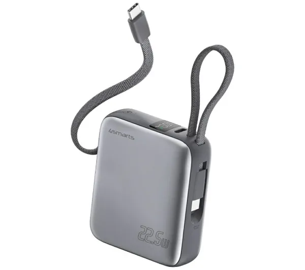 Powerbank 4smarts Pocket Dual Cord 10000mAh 22,5W Wbudowany kabel USB-C Szary