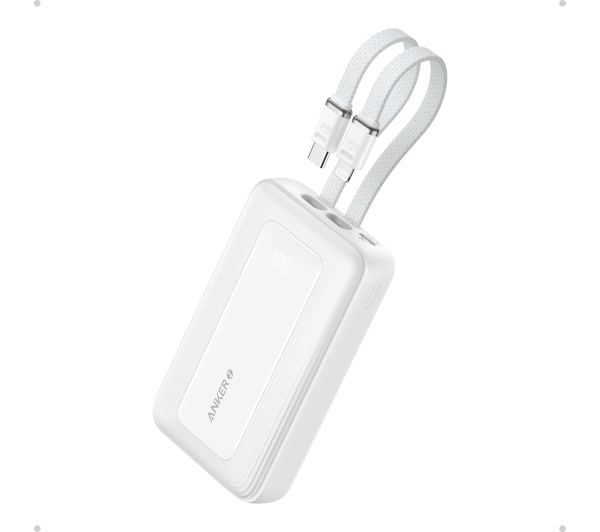 Powerbank Anker Zolo (A1680H21) 10000mAh 30W wbudowany kabel USB-C i Lightning Biały