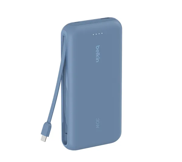 Wbudowany kabel eliminuje konieczność noszenia dodatkowych przewodów. Wystarczy podłączyć urządzenie bezpośrednio do telefonu czy tabletu, aby od razu rozpocząć ładowanie. To wygodne udogodnienie w podróży, w pracy czy na uczelni – mniej akcesoriów do zabrania i pewność, że kabel zawsze jest pod ręką.