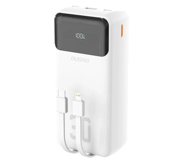 Powerbank Dudao K15MAX 30000mAh 22.5W Wbudowany kabel USB-C Lightning Biały