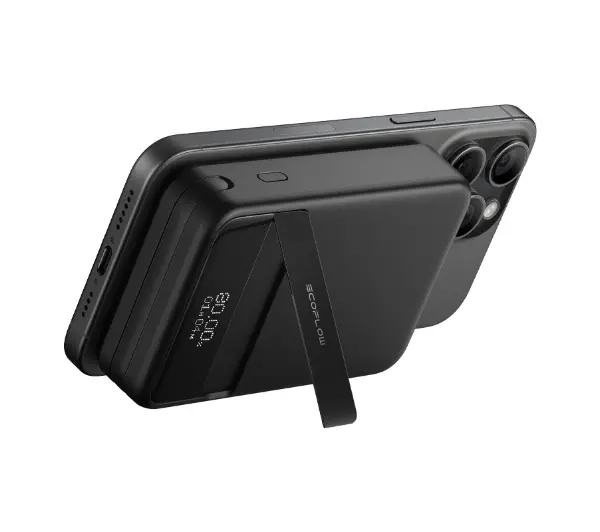<h2>Powerbank magnetyczny EcoFlow RAPID, 10000mAh (czarny)</h2><p>EcoFlow RAPID to nowoczesny magnetyczny powerbank o pojemności 10 000 mAh, oferujący błyskawiczne i bezpieczne ładowanie Twoich urządzeń mobilnych. Dzięki ładowaniu przewodowemu o mocy do 65W oraz bezprzewodowemu o mocy 15W ten kompaktowy powerbank idealnie nadaje się do zasilania smartfonów, tabletów, a nawet laptopów. Wyposażony w zintegrowany kabel USB-C i port USB-C, współpracuje z popularnymi protokołami, takimi jak PD, QC, PPS, FCP, SCP i UFCS, co gwarantuje wszechstronną kompatybilność.</p> <h2>Błyskawiczne ładowanie przewodowe</h2><p>Z powerbankiem EcoFlow RAPID możesz liczyć na moc ładowania przewodowego sięgającą 65W, co pozwala na szybkie i efektywne naładowanie urządzeń. Zintegrowany kabel USB-C oraz port USB-C zapewniają maksymalną wygodę i wydajność. Uzyskanie 30% naładowania zajmuje zaledwie 11 minut, 70% - tylko 27 minut, a pełne naładowanie możliwe jest już w 52 minuty. Obsługa najbardziej popularnych protokołów sprawia, że możesz bezpiecznie ładować swoje urządzenia niezależnie od marki czy modelu.</p> <h2>Bezprzewodowe ładowanie bez ograniczeń</h2><p>EcoFlow RAPID to nie tylko szybkie ładowanie przewodowe – powerbank oferuje też ładowanie bezprzewodowe o mocy 15W, co daje Ci swobodę od kabli. Obsługuje standardy Qi1.0 (5W) oraz Qi2.0 (15W), dzięki czemu umożliwia bezprzewodowe ładowanie zarówno dla urządzeń z systemem Android, jak i iPhone'ów od modelu 13 wzwyż. Ładowanie iPhone’a 15 do 50% zajmie tylko 44 minuty, zapewniając szybki dostęp do energii, kiedy jej najbardziej potrzebujesz.</p> <h2>Lekki i kompaktowy – idealny w podróży</h2><p>EcoFlow RAPID łączy pojemność z wygodą użytkowania. Ważąc zaledwie 258 g i mając wymiary 108 x 70 x 22.9 mm, łatwo zmieści się w kieszeni czy torebce, dzięki czemu możesz go mieć zawsze pod ręką. To doskonały wybór na co dzień lub w podróż, kiedy potrzebujesz dodatkowego źródła energii, nie obciążając swojego bagażu.</p>