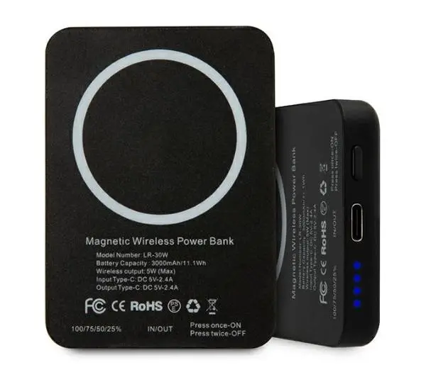Stylowy powerbank, dostępny w kolorze czarnym, pozwalający na ładowanie kompatybilnych smartfonów, bez potrzeby podłączania go kablem do urządzenia. Dzięki idealnie dopasowanym magnesom mocno przywiera do urządzenia, co przyspiesza uzupełnianie energii. Po prostu przyłóż urządzenie bezpośrednio do ładowarki a Twój telefon automatycznie zacznie się ładować.