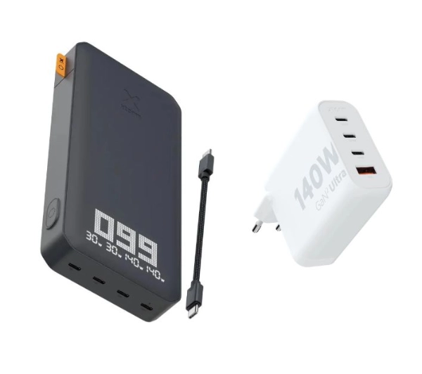 Powerbank Xtorm XB403 Titan Ultra 27000mAh 200W Czarny + Ładowarka XEC140 GaN2 Ultra 140W Biały