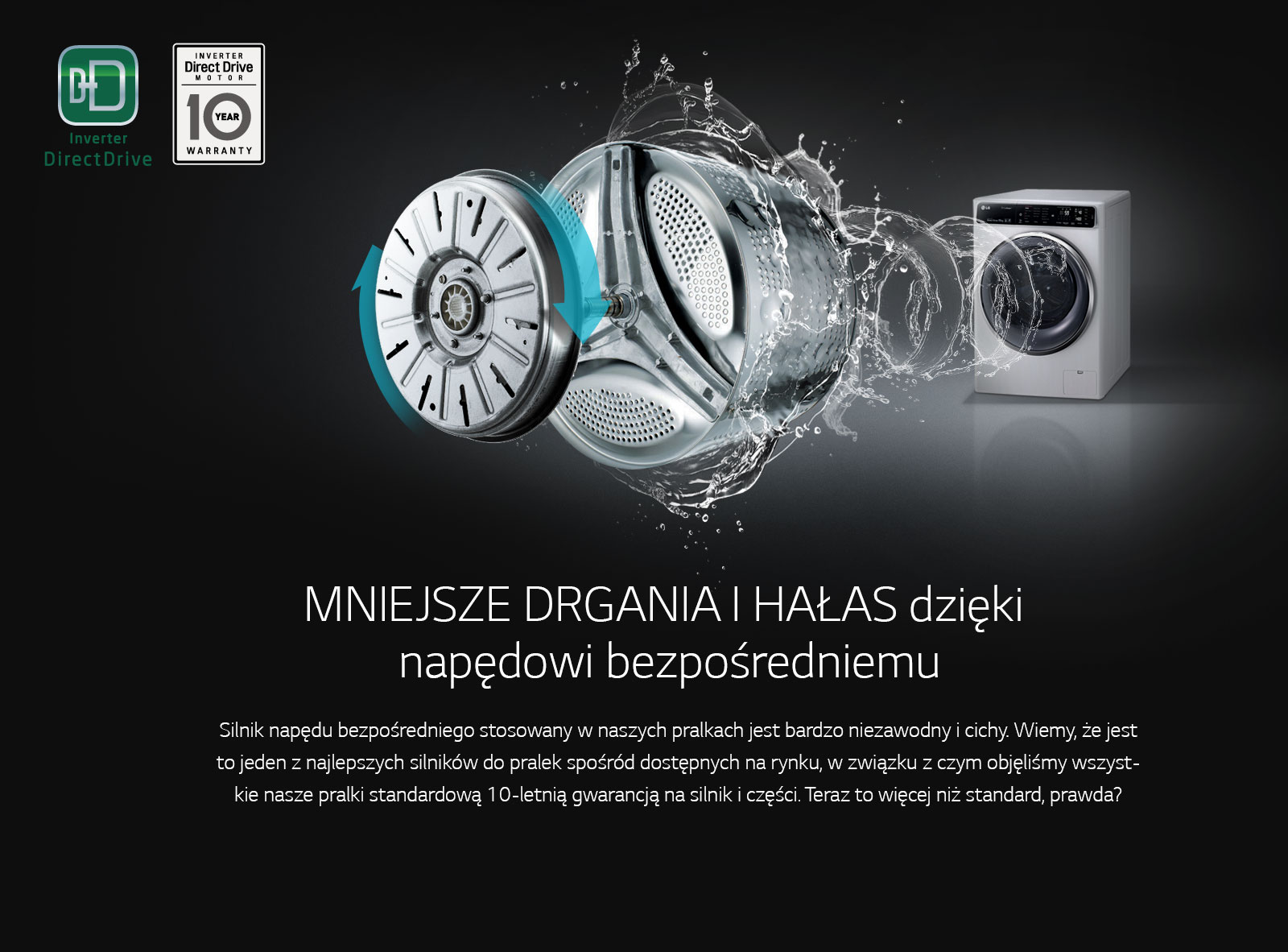 <h2>F10U2QDN0</h2><h4>Główne cechy</h4><ul> <li>A+++ -40%</li> <li>Technologia TurboWash™ - pełny cykl w 59 minut</li> <li>Bezpośredni napęd bębna DIRECT DRIVE</li> <li>Dodatkowe programy ze Smartfona</li> <li>22 lata niezawodności silnika</li></ul><h3>SZYBKIE I OSZCZĘDNE dzięki funkcji Turbowash™</h3><p>Funkcja natrysku wodnego TurboWash™ znacznie ogranicza czas prania, oszczędza mnóstwo energii i zapewnia dokładniejsze pranie ubrań. Natrysk wodny działa bezpośrednio na tkaninę przez około 120 sekund, dzięki czemu cykle prania i płukania z napędem bezpośrednim 6 Motion są skuteczniejsze niż kiedykolwiek wcześniej.</p> <h3>Skuteczność funkcji TURBOWASH™</h3><p>Funkcja LG TurboWash™ skraca zwykły program prania do zaledwie 59 minut. Dodatkowo TurboWash™ obniża koszty energii, ograniczając zużycie energii elektrycznej nawet o 15% i zużycie wody nawet o 40%. Teraz można zrobić pranie w krótszym czasie niż kiedykolwiek wcześniej, oszczędzając także na rachunkach za media.</p> <h3>Nagradzany i sprawdzony</h3> <h3> </h3><p> </p> <h3> </h3><p> </p> <h3> </h3><p> </p> <h3>Włącz pauzę i dorzuć pranie</h3><p>Jeśli zapomnisz włożyć czegoś do prania, po prostu naciśnij przycisk „Dodaj odzież” i dodaj co chcesz, od skarpetek po kurtkę. Drzwiczki można otworzyć podczas prania w każdym programie — bawełna, mieszany, tkaniny mało wymagające, Speed14* — prawie natychmiast (w ciągu około 3 sekund)**.</p><h3>SZYBKIE I OSZCZĘDNE dzięki funkcji Turbowash™</h3><p>Funkcja natrysku wodnego TurboWash™ znacznie ogranicza czas prania, oszczędza mnóstwo energii i zapewnia dokładniejsze pranie ubrań. Natrysk wodny działa bezpośrednio na tkaninę przez około 120 sekund, dzięki czemu cykle prania i płukania z napędem bezpośrednim 6 Motion są skuteczniejsze niż kiedykolwiek wcześniej.</p> <h3>Skuteczność funkcji TURBOWASH™</h3><p>Funkcja LG TurboWash™ skraca zwykły program prania do zaledwie 59 minut. Dodatkowo TurboWash™ obniża koszty energii, ograniczając zużycie energii elektrycznej nawet o 15% i zużycie wody nawet o 40%. Teraz można zrobić pranie w krótszym czasie niż kiedykolwiek wcześniej, oszczędzając także na rachunkach za media.</p> <h3>Nagradzany i sprawdzony</h3><p> </p> <h3> </h3><p> </p> <h3> </h3><p> </p> <h3> </h3><p> </p> <h3>Włącz pauzę i dorzuć pranie</h3><p>Jeśli zapomnisz włożyć czegoś do prania, po prostu naciśnij przycisk „Dodaj odzież” i dodaj co chcesz, od skarpetek po kurtkę. Drzwiczki można otworzyć podczas prania w każdym programie — bawełna, mieszany, tkaniny mało wymagające, Speed14* — prawie natychmiast (w ciągu około 3 sekund)**.</p>