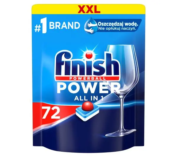 <h2>FINISH POWER ALL IN ONE. TABLETKI DO ZMYWARKI.</h2><h5>Wielofunkcyjne tabletki do zmywarki Finish Power All in 1 skutecznie czyszczą twoje naczynia z tłustych zabrudzeń oraz usuwają nawet osad z kawy i herbaty. Zapobiegają osadzaniu się kamienia, zapewniają ochronę szkła oraz zabezpieczają filtry W ZMYWARCE. Moc powerball usuwa przypalone resztki jedzenia i nadaje naczyniom połysk bez smug.</h5>OSZCZĘDZAJ WODĘ.NIE OPŁUKUJ NACZYŃ. <h5>Tabletki Power All in 1 posiadają dodatkowo funkcję soli oraz nabłyszczacza. Pozostawiają świeży zapach. Są proste w użyciu, nie wymagają rozpakowywania, dzięki czemu też nie brudzą rąk.</h5>Bez wstępnego namaczaniaChronią przed kamieniemZapewniają idealny połyskUsuwają trudne zabrudzeniaEliminują osadzony tłuszczBez wstępnego namaczaniaChronią przed kamieniemZapewniają idealny połyskUsuwają trudne zabrudzeniaEliminują osadzony tłuszcz<h2>CZYSTOŚĆ I POŁYSK KAŻDEGO DNIA</h2> MARKA*<h5>REKOMENDOWANA PRZEZ</h5> <h2>Z FINISH OSZCZĘDZAJ WODĘ. NIE OPŁUKUJ NACZYŃ</h2>Szukasz sposobu na oszczędzanie wody? Nie opłukuj naczyń przed włożeniem ich do zmywarki. Tylko w ciągu tygodnia możesz zaoszczędzić aż 48 litrów wody. Możesz osiągnąć idealne rezultaty zmywania już za pierwszym razem dzięki tabletkom Finish, które eliminują zabrudzenia bez konieczności opłukiwania naczyń przed włożeniem do zmywarki. **OSZCZĘDZAJ WODĘ DLA PRZYSZŁYCH POKOLEŃ.Już dziś zacznij oszczędzać wodę. Trudno to sobie wyobrazić, ale już w 2030 r. będziemy mieli prawie o połowę mniej wody do dyspozycji w codziennym życiu.To znaczy, że ilość wody użytkowej w Polsce będzie o 40% niższa od zapotrzebowania na nią.*** <h2>OPAKOWANIA NADAJĄCE SIĘ DO RECYKLINGU.</h2><p>Wyrzucając śmieci pamiętaj o segregacji i zawsze wyrzucaj pudełka do odpowiednio oznakowanych pojemników. Razem zadbajmy o naszą planetę. Opakowanie produktów Finish nadaje się do recyklingu.</p> <h4>ABY UZYSKAĆ NIEZRÓWNANĄ CZYSTOŚĆ NACZYŃ, WYPRÓBUJ:</h4><ol> <li> PŁYN DO CZYSZCZENIA ZMYWARKI dla ładnego zapachu i czystości zmywarki </li> <li> ODŚWIEŻACZ DO ZMYWARKI Z TECHNOLOGIĄ ANTI ODOR dla zmywarki pachnącej świeżością </li> <li> SÓL DO ZMYWARKI dla ochrony zmywarki i filtra przed odkładaniem się kamienia </li> <li> PŁYN NABŁYSZCZAJĄCY dla zapobiegania zaciekom i lepszych rezultatów schnięcia </li></ol><ol> <li> </li> <li> </li> <li> </li> <li> </li></ol><h2>SPOSÓB UŻYCIA:</h2>Trzymaj kapsułkę tylko suchymi dłońmi.<ul> <li> Nie zdejmuj folii z tabletki ani jej nie przecinaj. Rozpuszcza się całkowicie podczas mycia. </li> <li> Do każdego zmywania umieść jedną tabletkę w suchym dozowniku. </li> <li> Nie umieszczaj w koszyku na sztućce. </li> <li> W celu osiągnięcia najlepszych rezultatów korzystaj z programów eco lub auto. </li></ul>Marka Finish zajęła #1 miejsce w kategorii produktów do Automatycznego Zmywania Naczyń pod względem sprzedaży wartościowej na obszarze UE (z wyłączeniem Cypru, Finlandii, Luksemburga, Malty), w poprzednim roku kalendarzowym. Nielsen, sprzedaż detaliczna.Średnie tygodniowe zużycie wody na opłukiwanie naczyń, na 1 respondenta, badanie IPSOS, 2020, na zlecenie RB (Hygiene Home) Poland sp. z o.o.Dane na podstawie AQUEDUCT Beta. <a>Szczegółowa Karta Charakterystyki wyrobu.</a>