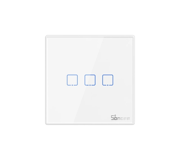 <h2>Bezprzewodowy Włącznik Światła Sonoff 433MHz T2EU3C-RF (3-kanałowy)</h2><p>Sonoff T2EU3C-RF to bezprzewodowy włącznik światła, który pozwala na komfortowe zarządzanie oświetleniem z dowolnego miejsca. Trzykanałowy przełącznik łączy w sobie prostotę nowoczesnego wzornictwa z funkcjonalnością zdalnej obsługi, co czyni go praktycznym wyborem do każdego inteligentnego wnętrza. Obsługuje protokół 433 MHz RF, umożliwiając współpracę z wybranymi urządzeniami marki Sonoff, a jego instalacja nie wymaga prowadzenia dodatkowego okablowania.</p> <h2>Obsługa przez aplikację i głos</h2><p>Sterowanie przełącznikiem odbywa się z poziomu aplikacji eWeLink, dostępnej na smartfony z systemem Android i iOS. Oprócz obsługi manualnej oferuje także pełną integrację z asystentami głosowymi – Amazon Alexa i Google Assistant. Możesz więc włączać i wyłączać światło bez wstawania z kanapy, używając jedynie komendy głosowej. Wbudowany moduł 433 MHz pozwala również na używanie go jako pilota kompatybilnego z takimi urządzeniami jak RFR2, RFR3, 4CHPROR3, TX czy Slampher R2.</p> <h2>Automatyzacja dzięki harmonogramom</h2><p>Dzięki funkcji harmonogramu możesz ustawić dokładne godziny, o których oświetlenie ma się włączać lub wyłączać. To idealne rozwiązanie dla osób ceniących sobie wygodę i powtarzalność w codziennym rytmie dnia. Dodatkową zaletą jest możliwość sparowania włącznika z innymi modelami Sonoff TX, co pozwala sterować tym samym oświetleniem z dwóch różnych miejsc bez potrzeby instalacji przewodów.</p> <h2>Design dopasowany do nowoczesnych wnętrz</h2><p>Włącznik Sonoff T2EU3C-RF wyróżnia się minimalistycznym wyglądem i białą obudową, która doskonale współgra z różnymi aranżacjami. Szklany, hartowany panel jest odporny na zarysowania, a podświetlane przyciski zmieniają swoją jasność w zależności od oświetlenia w otoczeniu, ułatwiając korzystanie z przełącznika po zmroku. Urządzenie można zamontować na kilka sposobów – za pomocą taśmy samoprzylepnej, śrub lub po prostu przymocować do biurka, co zwiększa jego uniwersalność.</p>