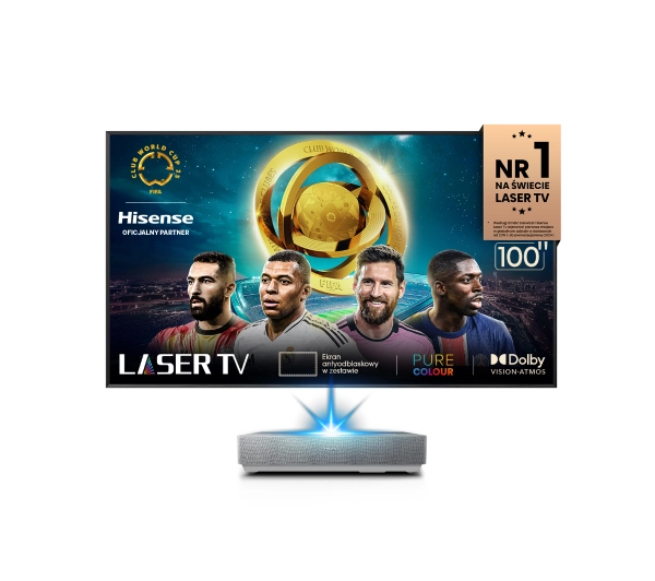 <h2>L5N Kinowe doznania w Twoim salonie</h2><h2>Odkryj możliwości LASER TV HISENSE z serii L5N</h2><p>Kinowe efekt w domowym zaciszu</p><p>Laserowe źródło światła X-Fusion™</p><p>Bogaty obraz i dźwięk</p><p>Bogaty obraz i dźwięk</p><p>Bogate nasycenie kolorów</p><p>Ponad 1.06 mld kolorów</p><p>Bogactwo szczegółów w obrazie</p><p>Jasność 2700 ANSI (American National Standard Institute) lumenów</p><p>Głębsza czerń, lepszy kontrast</p><p>Natywny kontrast 3000:1</p><h2>Wielki, kinowy ekran 100 cali</h2><p>Poczuj emocje na nowo. Odkryj ulubione treści na dużym ekranie, który sprawia, że wszystko wygląda jak w Kinie. Po takim doświadczeniu nie będziesz chciał wrócić do małego ekranu.</p><h2>Laserowe źródło światła X-Fusion™</h2><p>Laser TV L5N wykorzystuje technologię laserowego źródła światła X-Fusion™ aby tworzyć niezwykle ostre obrazy o wyjątkowym, kinowym charakterze. Dzięki żywotności nawet 25 000 godzin oraz ekranowi ALR (Ambient Light Rejecting) obraz z technologią niskiej emisji światła niebieskiego, możesz oglądać przez długie godziny bez zmęczenia oczu i bez utraty jakości wyświetlanego obrazu.</p><h2>Technologia antyrefleksyjna</h2><p>Dedykowany ekran L5N z technologią antyrefleksyjną (Ambient Light Rejecting) zapewnia jasny i kontrastowy, pełen żywych kolorów obraz. Ekran powoduje, że nie musisz wyłączać światła, aby cieszyć się doskonałą jakością – idealnie sprawdzi się w salonie w dzień i w nocy.</p><h2>Ultrakrótka ogniskowa</h2><p>Zaawansowana technologia Laser TV o ultrakrótkiej ogniskowej pozwala wyświetlać ogromny obraz z niewielkiej odległości, zachowując najwyższą rozdzielczość i ostrość.</p><h2>Bogate nasycenie kolorów</h2><p>Dzięki palecie ponad 1,06 mld kolorów Laser TV wyświetla obrazy niezwykle realistyczne i precyzyjne. Trawa ma idealnie zielony odcień, odcienie skóry są pełne subtelnych tonów, a animowane filmy zachwycają kolorami.</p><h2>Technologia dbająca o Twój wzrok, brak emisji szkodliwego światła niebieskiego</h2><p>Korzystając z Laser TV nasze oczy widzą jedynie światło odbite, nie są narażone na bezpośrednią emisję światła jak w typowych ekranach LCD (Liquid Crystal Display). To praktycznie zerowa ekspozycja światła niebieskiego, co oznacza, że nasze oczy mniej się męczą i możemy cieszyć się oglądaniem telewizji dłużej i bezpiecznie.</p><h2>Jasność 2700 ANSI lumenów</h2><p>Oglądaj seriale, filmy i graj w każdych warunkach za sprawą 2700 lumenów jasności, która zapewnia wyrazistość każdego szczegółu, niezależnie od pory dnia. Inteligentna regulacja jasności dostosuje obraz do warunków oświetleniowych panujących w pomieszczeniu, aby obraz był najlepszej jakości.</p><p>*Dane laboratorium Hisense Wpływ poziomu światła otoczenia Poziom światła otoczenia jest silnie zróżnicowany zależnie od środowiska użytkowania. Na podstawie badań empirycznych TI (Technical Instructions) zestawiono szacowane minimalne wartości jasności obrazu dla środowisk o różnym świetle otoczenia.</p><h2>Optymalizacja jakości obrazu AI (Artificial Intelligence)</h2><p>Hisense Laser TV L5N wykorzystuje zaawansowaną technologię AI, która inteligentnie rozpoznaje różne scenariusze, aby zapewnić najlepsze wrażenia wizualne. Technologia skutecznie poprawia jakość obrazu, optymalizując rozdzielczość, kolory, kontrast i oświetlenie, a wszystko to, aby zapewnić korzyści wizualne.</p><h2>Natywny kontrast 3000:1</h2><p>Natywny kontrast 3000:1 pozwala w pełni zanurzyć się w świecie intensywnych bieli i głębokich czerni. Cienie nie stanowią żadnego problemu, a to daje jeszcze lepsze efekty wizualne.</p><h2>Dolby Vision HDR(High Dynamic Range),HDR 10, HLG (Hybrid Log-Gamma), 4K (Ultra High Definition Resolution) Upscaler</h2><p>Dolby Vision HDR, HDR 10 i HLG otwierają całkowicie nowy wymiar szczegółowości obrazu, kolorów i kontrastów, wynikających z głębię obrazu. Technologia Dolby Vision zawiera dodatkowe szczegóły, od błysku w oku aktora po złożeniu fałdy ciemnego płaszcza. Odkryj obrazy pełne bogactwa, precyzji i niesamowitego realizmu.</p><h2>Płynny ruch</h2><p>Laser TV L5N posiada technologię Smooth Motion poprawiającą płynność ruchu. Dzięki temu takie treści jak gry czy transmisje sportowe pozostają płynne i czyste. Zapomnij o efekcie teatru czy smużeniu. Aktywuj tryb sportowy podczas oglądania transmisji i poczuj się jakbyś był na stadionie.</p><h2>Wysoka częstotliwość odświeżania 240 Hz (Hertz)</h2><p>L5N oferuje najwyższą możliwą częstotliwość odświeżania, sięgającą aż 240 Hz. Zanurz się w płynnych ruchach i ostrych obrazach. Technologa Auto-Low Latency Model (ALLM) automatycznie wykrywa podłączenie konsoli i optymalizuje ustawienia projektora, gwarantując rozrywkę bez opóźnień.</p><h2>Tryb Filmmaker</h2><h3>Przenieś efekty kinowe do domu</h3><p>Filmmaker Mode to tryb obrazu pozwalający oglądać obraz zgodnie z intencjami hollywodzkich twórców filmowych. Wyłącza on wszystkie „sztuczne ulepszacze”, aby pokazywać prawdziwe kolory i zachować kinową jakość obrazu w filmach. To możliwość cieszenia się ustawieniami obrazu rodem z hollywoodzkich studiów filmowych.</p><h2>Dolby Vision® i Dolby Atmos®</h2><p>Odkryj doskonałe połączenie technologii Dolby Vision i Dolby Atmos, które przenosi Twoje doświadczenia audiowizualne na wyższy poziom. Dzięki ulepszonej technologii Dolby Vision z bardziej zaawansowanym HDR, głębszymi kolorami i wyrazistszym obrazem, Hisense Laser Engine dostarcza spektakularną jakość wizualną.</p><p>Dolby Atmos wzbogaca dźwięk przestrzenny, tworząc wciągającą atmosferę, która otacza Cię z każdej strony.</p><p>Ciesz się automatyczną optymalizacją obrazu i dźwięku bez zbędnych komplikacji – idealna harmonia technologii w Twoim domu.</p><h2>Świat 3D w zasięgu Twojego wzroku</h