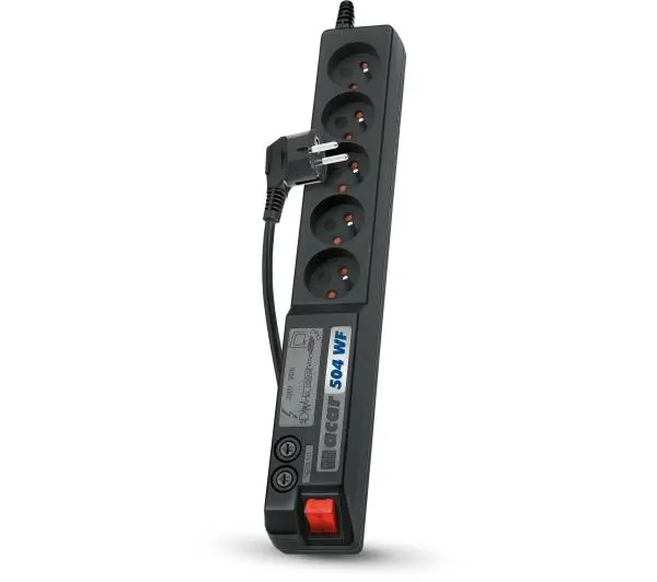 acar 504 WF to wersja urządzenia z rodziny acar 504, wzbogacona o wysoko tłumiący filtr przeciwzakłóceniowy. Posiada pięć gniazd sieciowych 230V z uziemieniem oraz 2 szybkie bezpieczniki topikowe. Zastosowanie filtra przeciwzakłóceniowego o bardzo wysokim współczynniku tłumienia, znacząco poszerza zakres możliwych zastosowań. Domowe systemy Audio-Video klasy hi-end, czułe urządzenia pomiarowe, zaawansowane urządzenia teleinformatyczne i telekomunikacyjne, to płaszczyzna możliwych zastosowań, którym sprosta acar 504 WF. Podświetlany wyłącznik sieciowy sygnalizuje obecność napięcia w zabezpieczonych gniazdach sieciowych 230V, a uchwyty mocujące zawarte w zestawie pozwalają na trwały montaż urządzenia w dowolnym, dogodnym miejscu.