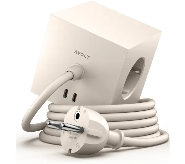 Kostka Avolt 3 gniazda 2x USB-C 1,8m Beżowy