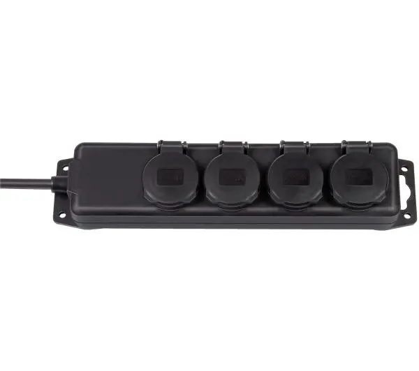 <h2>Bezpieczeństwo na pierwszym miejscu</h2><p>Wybierając naszą listwę zasilającą, stawiasz na niezawodność. Dzięki stopniowi ochrony IP44, urządzenie jest odporne na działanie kurzu i pryskającej wody, zapewniając bezpieczeństwo w każdych warunkach.</p><h2>Ergonomia i wygoda</h2><p>Unikalny układ gniazd pod kątem 45° nie tylko ułatwia podłączanie urządzeń, ale także pomaga w optymalnym wykorzystaniu przestrzeni. Samozamykające się pokrywy dodatkowo chronią przed wnikaniem zanieczyszczeń.</p><h2>Elastyczność i funkcjonalność</h2><p>Z 2-metrowym kablem, nasza listwa zasilająca zapewnia swobodę i elastyczność w rozmieszczeniu. Otwory montażowe ułatwiają bezpieczne i stabilne umocowanie listwy, gdziekolwiek tego potrzebujesz.</p><h2>Funkcjonalność:</h2><ul> <li>Ochrona IP44: odporność na kurz i wodę</li> <li>Układ gniazd 45°: wygoda i ergonomia</li> <li>Samozamykające się pokrywy: dodatkowa ochrona</li> <li>2m kabel: swoboda i elastyczność</li> <li>Łatwy montaż: dzięki otworom na śruby</li></ul><h2>Specyfikacja:</h2><ul> <li>Długość kabla: 2 m</li> <li>Wysokość: 36 cm</li> <li>Długość: 5,50 cm</li> <li>Ciężar: 0,60 kg</li> <li>Szerokość: 11 cm</li> <li>Kolor: czarny</li> <li>Sposób mocowania: mocowanie za pomocą śruby</li> <li>Maks. obciążalność elektryczna: 3500 W</li> <li>Znamionowe napięcie wejściowe: 230 V</li> <li>Rodzaj wtyczki: Wtyczka prosta</li> <li>Liczba gniazdek łącznie: 4</li> <li>Układ gniazdek: 90°</li> <li>Stopień ochrony (IP): IP44</li> <li>Do zastosowań zewnętrznych: Tak</li></ul>