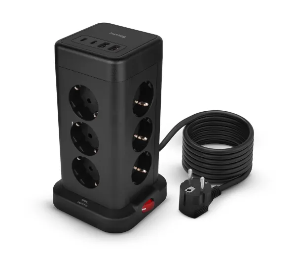 Kostka Huslog HUS1051 POWERTOWER 12 gniazd 1,8m Czarny