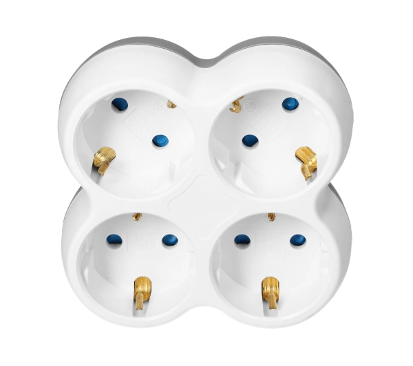 Informacje dodatkowe: Kształt korpusu: kwadratowy, Liczba gniazd ze stykiem ochronnym (Schuko): 4, Prąd znamionowy: 16 A, Częstotliwość: 50 Hz, Przesłony torów prądowych: tak, Wymiary – wysokość: 99,4 mm, Wymiary – szerokość: 99,4 mm, Wymiary – głębokość: 58,5 mm, Kolor: biało