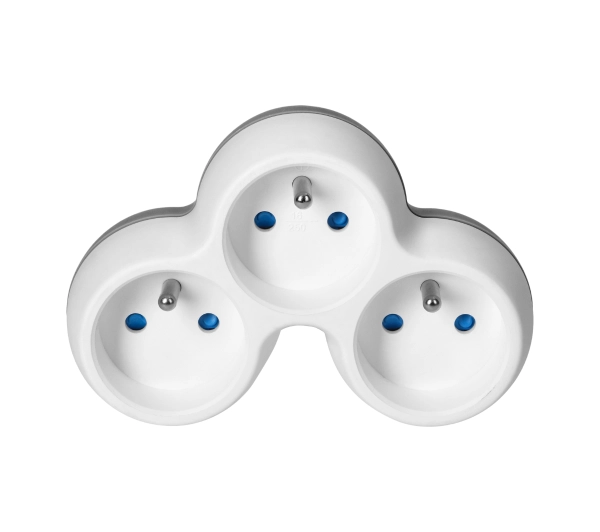 Informacje dodatkowe: Kształt korpusu: inne, Prąd znamionowy: 16 A, Częstotliwość: 50 Hz, Przesłony torów prądowych: tak, Wymiary – wysokość: 83,7 mm, Wymiary – szerokość: 123 mm, Wymiary – głębokość: 56,5 mm, Liczba gniazd typu francuskiego (typ E): 3, Kolor: biało-szary, Mat