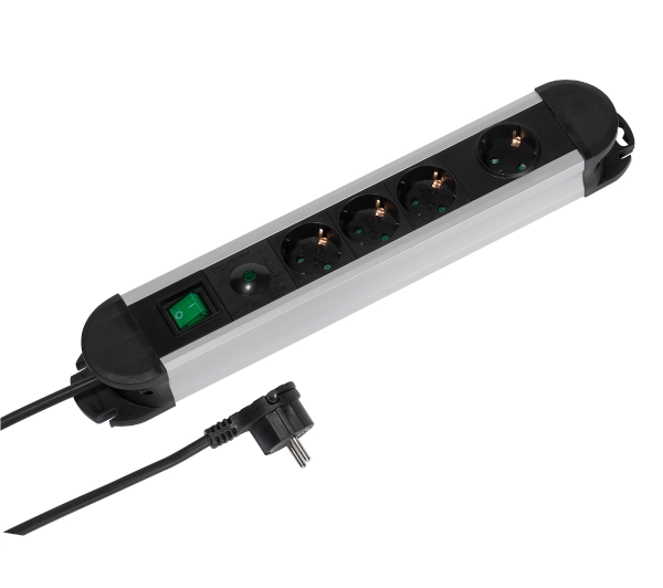 Informacje dodatkowe: aluminiowa obudowa, płaska wtyczka, jedno duże gniazdo dla większych wtyczek, specjalne zabezpieczenia styków minimalizuje ryzyko przypadkowego kontaktu, wtyki obrócone o 45 stopni, możliwość montażu na ścianie, 4 gniazda schuko