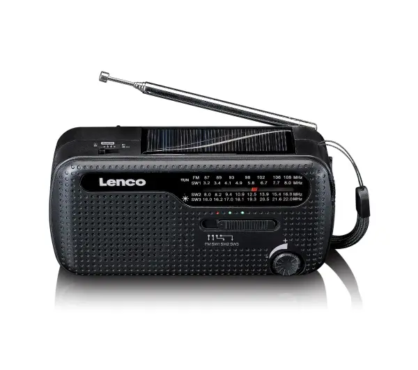 Radioodbiornik Lenco MCR-113BK Radio FM Ładowanie solarne, Ręczna korbą, Latarka i Powerbank Czarny