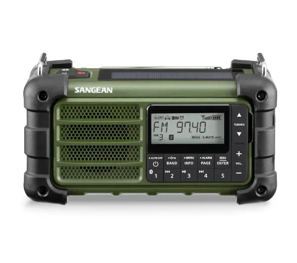 <h2>MMR-99</h2><h3>Radioodbiornik Sangean</h3><p>Sangean MMR-99 to wyróżniający się solidną obudową (stopień ochrony IP 55) przenośny radioodbiornik, obsługujący aż trzy różne opcje zasilania. To sprawia, że dotrzyma Ci towarzystwa w każdej sytuacji – w domu lub poza nim. Model MMR-99 to doskonały wybór dla wszystkich poszukiwaczy przygód.</p> <h3>Wygodne ładowanie</h3><p>Radioodbiornik wyposażono w panel solarny, a także generator na korbkę (dynamo). Możemy więc zasilić go bez problemu, nawet w trudnych warunkach. Co więcej, urządzenie ma wbudowany akumulator o pojemności 2600 mAh, który można ładować za pomocą gniazda USB, a dokładniej USB typu C i odpowiedniego okablowania. Model MMR-99 możesz również wykorzystać do naładowania baterii urządzenia mobilnego, np. smartfona.</p> <h3>Wbudowany moduł Bluetooth i nie tylko</h3><p>Radioodbiornik ma funkcję automatycznego wyszukiwania programów radiowych i umożliwia zapisanie w pamięci do 45 częstotliwości stacji radiowych nadawanych w pasmach AM/FM/MW. Oprócz tego ma wbudowane analogowe wejście audio (Aux), co umożliwia przewodowe podłączenie źródła dźwięku, np. odtwarzacza osobistego. Co więcej, model MMR-99 ma wbudowany moduł Bluetooth, który pozwala na strumieniowe odtwarzanie muzyki z zewnętrznego źródła. Na wyposażeniu jest także latarka LED z pięcioma trybami pracy. Umożliwia ona m.in. wysłanie komunikatu „SOS”.</p>