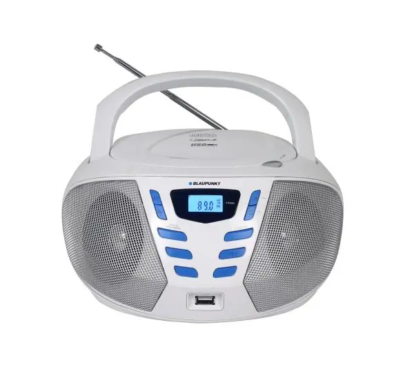 <h2>Blaupunkt BB7WH</h2><p>Radioodtwarzacz Blaupunkt BB7WH odczytuje dźwięk z płyt CD bądź nośników podłączonych do portu USB. Po wsunięciu 6 baterii ulubione przeboje oraz programy radiowe odsłuchasz w dowolnym miejscu.</p><h2>Poznaj Blaupunkt BB7WH</h2><a></a><h3>PRZENOŚNE NAGŁOŚNIENIE</h3><p>Zabierz w podróż wszechstronny radioodtwarzacz, a melodie muzycznych kompozycji będą towarzyszyć Ci podczas biwakowania bądź treningu w skateparku. Szerokopasmowe głośniki stereo pozwolą cieszyć się głośnym, naturalnym dźwiękiem. W celu bezpiecznego przeniesienia sprzętu wystarczy złapać za duży, rozkładany uchwyt.</p><a></a><h3>ROZRYWKA FM</h3><p>Pora na codzienną dawkę informacji? Z pomocą Blaupunkt BB7WH błyskawicznie ustawisz częstotliwość rozgłośni radiowej FM. Wszystko za sprawą cyfrowej syntezy w technologii PPL, która automatycznie ustala najlepsze parametry transmisji. Za jednym dotknięciem powrócisz też do jednej z 20 ustawionych wcześniej stacji.</p><a></a><h3>NAPĘD NA PŁYTY</h3><p>Urządzenie sprawdzi się w domu, sali lekcyjnej oraz w biurze. Umożliwia odtwarzanie nagrań z krążków CD oraz cyfrowych plików MP3 zapisanych np. na pendrive’ie. Oferuje tym samym dostęp do kolekcji albumów czy singli, książek mówionych, podcastów oraz innych treści audio pobranych z internetu.</p><h2>Radioodtwarzacz Blaupunkt BB7WH z bliska</h2><h3>1 PODŚWIETLANY EKRAN</h3><p>Zerknij na jasny wyświetlacz Blaupunkt BB7WH i wygodnie ustaw stację radiową lub numer utworu do odtworzenia bez włączania dodatkowego światła.</p><h3>2 KOMFORT ZABAWY</h3><p>Chcesz odizolować się od domowych hałasów? Żaden problem – wsuń wtyczkę jack 3,5 mm do gniazda audio, aby przenieść dźwięk do słuchawek.</p><h3>3 NIEZAWODNE ZASILANIE</h3><p>Do uruchomienia Blaupunkt BB7WH możesz użyć gniazdka sieci elektrycznej lub 6 baterii R14. Z uniwersalnym sprzętem muzyka jest zawsze obok Ciebie.</p><h2>W opakowaniu Blaupunkt BB7WH</h2><h6>1Radioodtwarzacz</h6><h6>2Instrukcja użytkowania</h6><h6>3Karta gwarancyjna</h6><h2>Blaupunkt – marka godna zaufania</h2><p>Wieloletnie zaufanie konsumentów</p><p>Producent elektroniki użytkowej</p><p>Marka działająca na rynku od 1923 roku</p>