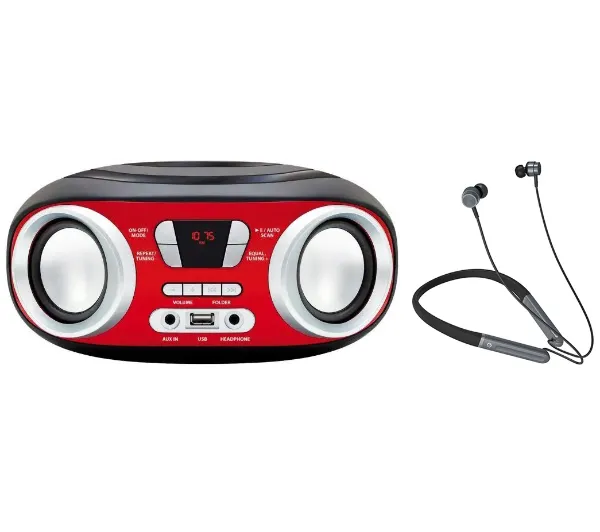 Radioodtwarzacz Manta MM9210BT CHILLI Bluetooth Czarno-czerwony + Słuchawki MNH02