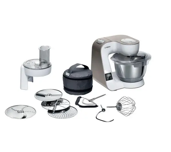 Robot kuchenny MUM5 spełni oczekiwania najbardziej wymagających klientów – jest niezwykle wydajny, wyposażyliśmy go w mocny silnik, posiada wiele praktycznych funkcji, a przede wszystkim innowacyjny planetarny system mieszania aż w trzech kierunkach! Dodatkowo przykuwa uwagę ciekawym wyglądem i kolorystyką. Teraz robot w Twojej kuchni może już stać na wyeksponowanym miejscu, bo idealnie pasuje zarówno do tradycyjnych, jak i nowoczesnych wnętrz.Najważniejsze cechy urządzeniaWażenie bezpośrednio w misie. Zintegrowany wyświetlacz z timerem. Idealny efekt mieszania. Wysoka wydajność. Łatwe unoszenie ramienia. Szybkie krojenie warzyw i owoców. Pokrowiec na akcesoria Maksimum bezpieczeństwa przy użytkowaniu robota<table> <tbody> <tr> <td> Ważenie nigdy nie było prostsze Dokładna i czuła waga zintegrowana z robotem kuchennym marki Bosch to niezwykle funkcjonalne rozwiązanie. Teraz wszystkie potrzebne składniki odmierzysz wprost w blenderze kielichowym lub w misie robota. Nie potrzebujesz już dodatkowych kuchennych akcesoriów. Wszystko w jednym urządzeniu – oszczędność miejsca i czasu! </td> <td> </td> </tr> </tbody></table>Ważenie nigdy nie było prostszeDokładna i czuła waga zintegrowana z robotem kuchennym marki Bosch to niezwykle funkcjonalne rozwiązanie. Teraz wszystkie potrzebne składniki odmierzysz wprost w blenderze kielichowym lub w misie robota. Nie potrzebujesz już dodatkowych kuchennych akcesoriów. Wszystko w jednym urządzeniu – oszczędność miejsca i czasu!<table> <tbody> <tr> <td> </td> <td> Doskonały efekt za każdym razem Ustaw wymagany czas pracy, a robot będzie wyrabiać, mieszać lub ubijać tak długo, jak zechcesz. Możesz zająć się innymi czynnościami, ponieważ robot zatrzyma się automatycznie po ustawionym przez Ciebie czasie. </td> </tr> </tbody></table>Doskonały efekt za każdym razemUstaw wymagany czas pracy, a robot będzie wyrabiać, mieszać lub ubijać tak długo, jak zechcesz. Możesz zająć się innymi czynnościami, ponieważ robot zatrzyma się automatycznie po ustawionym przez Ciebie czasie.<table> <tbody> <tr> <td> Silnik o mocy 1000 W Chcesz szybko i wygodnie przygotowywać duże ilości potraw i ciast? Przy pomocy 1000 W silnika nie musisz się już o nic martwić. Oferuje maksymalną wydajność i zapewnia doskonałe wyniki. </td> <td> </td> </tr> </tbody></table>Silnik o mocy 1000 WChcesz szybko i wygodnie przygotowywać duże ilości potraw i ciast? Przy pomocy 1000 W silnika nie musisz się już o nic martwić. Oferuje maksymalną wydajność i zapewnia doskonałe wyniki.<table> <tbody> <tr> <td> </td> <td> Planetarny system mieszania 3D Przekładnia robota została skonstruowana tak, aby wyrabiać wszystkie składniki z niezwykłą dokładnością i bez pozostawienia resztek masy na brzegu misy. To wszystko możliwe jest dzięki planetarnemu ruchowi mieszadeł w aż trzech kierunkach. </td> </tr> </tbody></table>Planetarny system mieszania 3D Przekładnia robota została skonstruowana tak, aby wyrabiać wszystkie składniki z niezwykłą dokładnością i bez pozostawienia resztek masy na brzegu misy. To wszystko możliwe jest dzięki planetarnemu ruchowi mieszadeł w aż trzech kierunkach.<table> <tbody> <tr> <td> EasyArm Lift - unoszone ramię dla większego komfortu EasyArm Lift to jeszcze większa wygoda użytkowania urządzenia. Po naciśnięciu przycisku ramię robota podnosi się do góry, więc wyjęcie misy czy wymiana akcesoriów nie stanowią żadnego problemu. </td> <td> </td> </tr> </tbody></table>EasyArm Lift - unoszone ramię dla większego komfortuEasyArm Lift to jeszcze większa wygoda użytkowania urządzenia. Po naciśnięciu przycisku ramię robota podnosi się do góry, więc wyjęcie misy czy wymiana akcesoriów nie stanowią żadnego problemu.W opakowaniu <table> <tbody> <tr> <td> </td> <td> W zestawie wraz z robotem otrzymujesz: • zestaw trzech profesjonalnych końcówek: do mieszania, ubijania i zagniatania • rozdrabniacz z czterema tarczami • misę ze stali szlachetnej • pokrowiec na akcesoria </td> </tr> </tbody></table> W zestawie wraz z robotem otrzymujesz: • zestaw trzech profesjonalnych końcówek: do mieszania, ubijania i zagniatania • rozdrabniacz z czterema tarczami • misę ze stali szlachetnej • pokrowiec na akcesoria<table> <tbody> <tr> <td> Zestaw profesjonalnych końcówek Z zestawem profesjonalnych końcówek każde ciasto czy krem wyjdą idealnie, ponieważ w wyposażeniu standardowym robota znajdują się 3 końcówki: do zagniatania ciężkich ciast, do mieszania lekkich ciast i do ubijania, np. śmietany, białek i masy na biszkopt. </td> <td> </td> </tr> </tbody></table>Zestaw profesjonalnych końcówekZ zestawem profesjonalnych końcówek każde ciasto czy krem wyjdą idealnie, ponieważ w wyposażeniu standardowym robota znajdują się 3 końcówki: do zagniatania ciężkich ciast, do mieszania lekkich ciast i do ubijania, np. śmietany, białek i masy na biszkopt.<table> <tbody> <tr> <td> </td> <td> Rozdrabniacz do warzyw i owoców Wyjątkowo wszechstronny - szybkie i proste rozdrabnianie, tarcie oraz cięcie różnorodnych składników bezpośrednio do misy. Tarcze ze stali nierdzewnej zapewniają naturalny smak przygotowanej potrawy oraz są łatwe do czyszczenia. Rozdrabniacz z pięcioma tarczami (do cięcia w plastry, wiórki i słupki, rozdrabniania oraz tarcia ziemniaków na placki ziemniaczane) pomoże Ci szybko i prosto stworzyć doskonałe, aromatyczne posiłki. </td> </tr> </tbody></table>Rozdrabniacz do warzyw i owocówWyjątkowo wszechstronny - szybkie i proste rozdrabnianie, tarcie oraz cięcie różnorodnych składników bezpośrednio do misy. Tarcze ze stali nierdzewnej zapewniają naturalny smak przygotowanej potrawy oraz są łatwe do czyszczenia. Rozdrabniacz z pięcioma tarczami (do cięcia w plastry, wiórki i słupki, rozdrabniania oraz tarcia ziemniaków na placki ziemniaczane) pomoże Ci szybko i prosto stw
