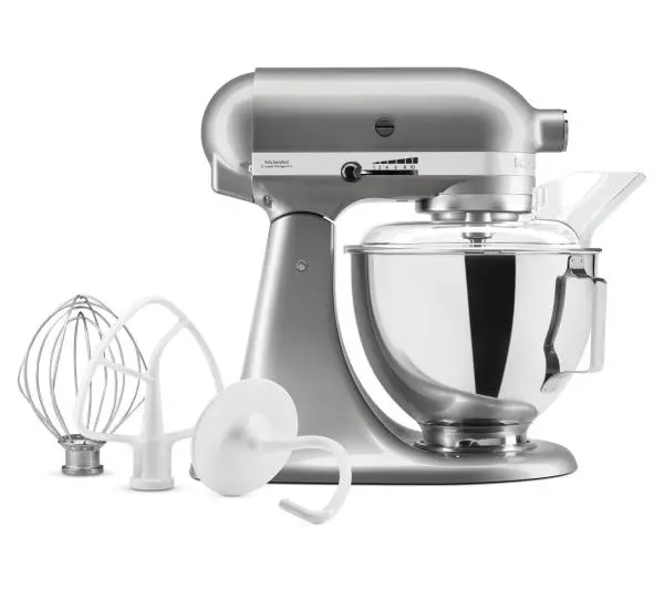 <h2>KitchenAid 5KSM95PSEMC</h2>KitchenAid 5KSM95PSEMC sprawi, że wykonywanie kuchennych zadań, które do tej pory były pracochłonne i zabierały Ci wiele czasu, stanie się łatwiejsze. Robot planetarny jest wielofunkcyjny, co zawdzięcza się uniwersalnemu gniazdu przystawkowemu, do którego pasują liczne akcesoria marki KitchenAid.Efektywne i bezwysiłkowe łączenie składników dzięki planetarnemu ruchowi mieszadełŁatwa wymiana akcesoriów za sprawą uniwersalnego gniazda przystawkowegoBezpośredni napęd gwarantuje cichą i energooszczędną pracę robotaSolidna konstrukcja – urządzenie zostało wykonane z cynkowego odlewuMocny silnik gwarantuje wysoką wydajność robota nawet przy wymagających pracachStylowe wzornictwo pasujące do każdej eleganckiej kuchni<h2>Poznaj robot planetarny KitchenAid 5KSM95PSEMC</h2> Dokładne łączenie składnikówRobot planetarny KitchenAid 5KSM95PSEMC doskonale sprawdza się przy wyrabianiu ciast czy też przygotowywaniu mas na kremy. Wszystko dzięki specyficznemu ruchowi wykonywanemu przez mieszadła urządzenia – kręcą się one wokół misy i wokół własnej osi, dzięki czemu precyzyjnie zgarniają wszystkie składniki ze ścianek i dna pojemnika, zapewniając dokładne mieszanie mas. Ogromne możliwościW modelu KitchenAid 5KSM95PSEMC przygotowane zostało uniwersalne gniazdo przystawkowe, dzięki któremu możliwości urządzenia stają się niemal nieograniczone. Dzięki niemu do robota można bowiem podłączać rozmaite akcesoria z oferty marki KitchenAid, np. maszynkę do mielenia, urządzenie do tarcia i szatkowania warzyw czy też maszynkę do makaronu. Cicha i oszczędna pracaSzukasz robota planetarnego, który nawet przy wykonywaniu wymagających zadań będzie pracować stosunkowo cicho? Model KitchenAid 5KSM95PSEMC spełni Twoje oczekiwania! Urządzenie zostało wyposażone w bezpośredni napęd na narzędzia i przystawki, za sprawą którego nie tylko działa dyskretnie, ale również cechuje się wysoką energooszczędnością. Solidne wykonanieKorpus KitchenAid 5KSM95PSEMC został wykonany z odlewu cynku. Cechuje się zatem wytrzymałością oraz zapewnia stabilność podczas pracy urządzenia niezależnie od czy wyrabia ciasto drożdżowe czy ubija śmietanę. Jeśli więc szukasz solidnego sprzętu kuchennego na lata, prezentowany produkt okaże się strzałem w dziesiątkę! Mocny silnikChcesz, by Twój pomocnik kuchenny mógł podejmować się nawet trudnych i wymagających zadań? Postaw na model KitchenAid 5KSM95PSEMC, w którym zastosowano silnik o mocy 275 W z bezpośrednim przełożeniem na mieszadła. To właśnie dzięki niemu robot bez trudu radzi sobie z wyrabianiem ciężkich drożdżowych ciast czy dokładnym mieleniem mięsa, a efekty jego pracy są zawsze zachwycające! Stylowe wzornictwoRobot planetarny KitchenAid 5KSM95PSEMC świetnie zaprezentuje się na kuchennym blacie. Metaliczne wykończenie i uproszczona forma urządzenia sprawiają, że jest ono bardzo eleganckie i ponadczasowe zarazem. Z powodzeniem uzupełni wystrój nowoczesnych i klasycznych kuchni, w obu przypadkach perfekcyjnie komponując się z otoczeniem.<h2>Zawartość opakowania KitchenAid Artisan 5KSM95PSEMC</h2>W opakowaniu Robot planetarny Stalowa misa 4,3 l Rózga ze stalowymi prętami Metalowe uniwersalne mieszadło płaskie z powłoką nylonową Metalowy hak z powłoką nylonową Osłona z podajnikiemKitchenAid – marka godna zaufaniaWieloletnie doświadczenieHistoria marki sięga 1886 rokuPionier w swojej dziedzinieJeden z liderów w produkcji małego i dużego AGD do kuchniDoceniana jakośćMarka jest laureatem licznych nagród i wyróżnień